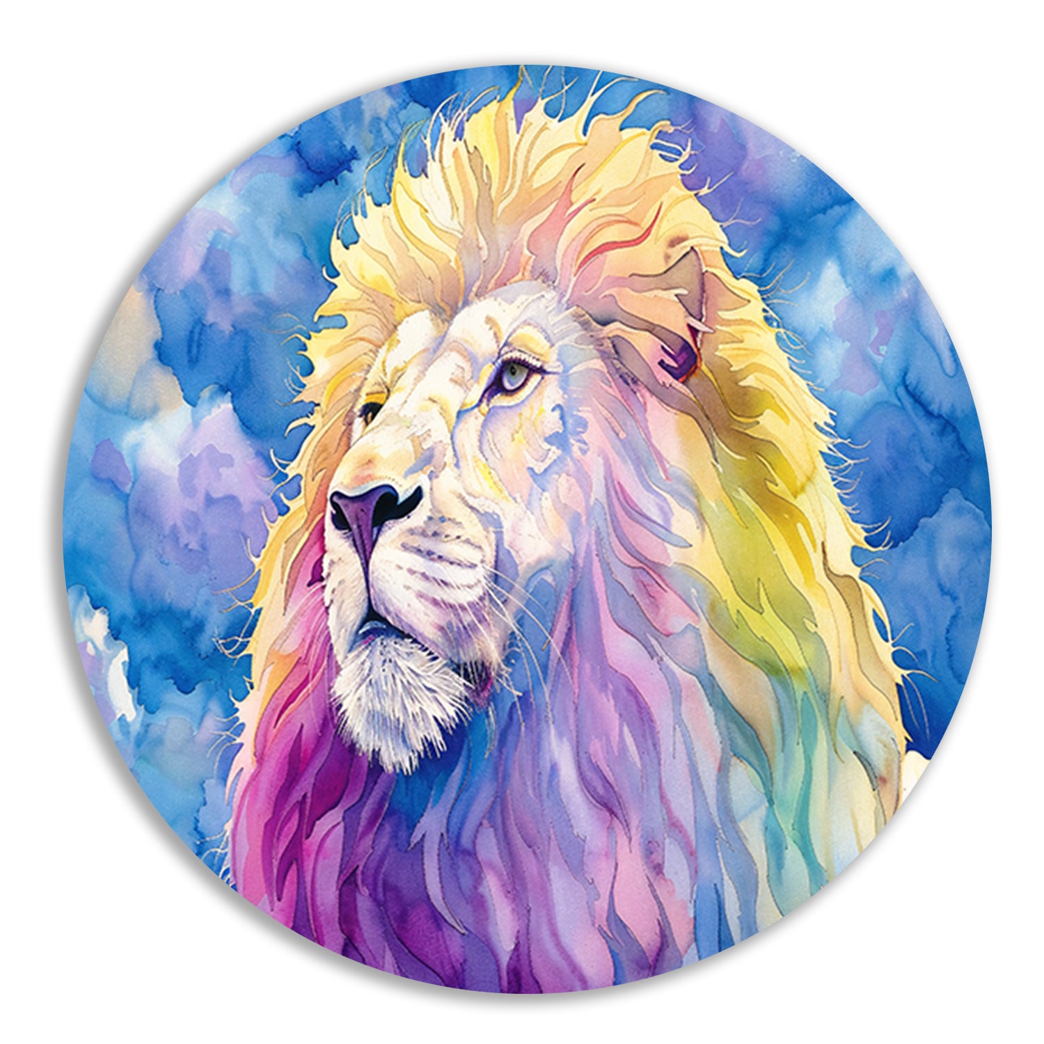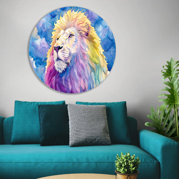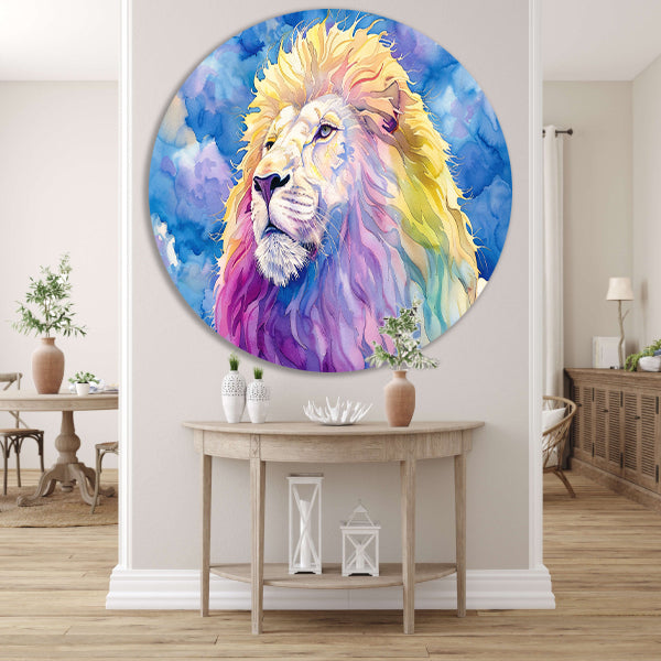 Kleurrijk abstract leeuwenschilderij in waterverf forex muurcirkel