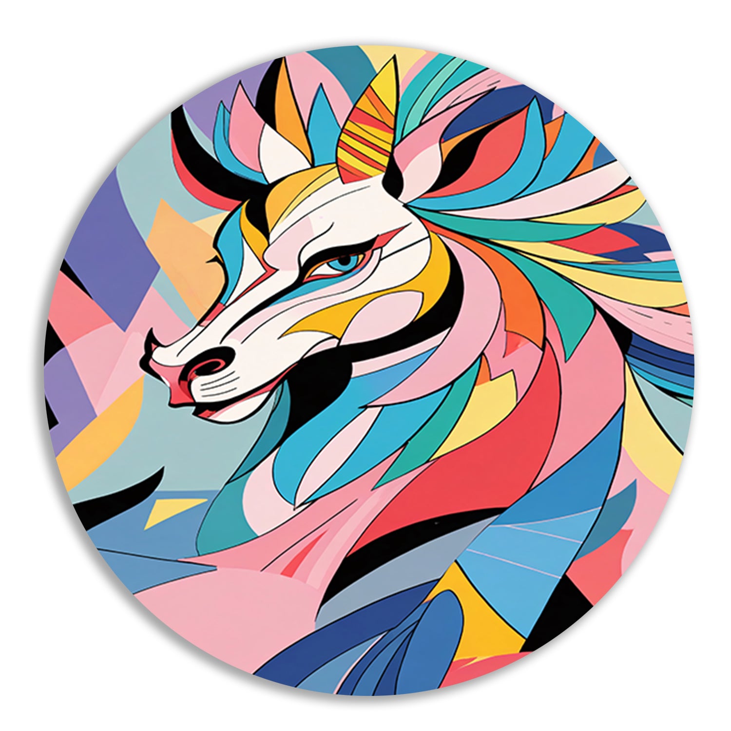 Kleurrijk abstract paard in kubistische stijl forex muurcirkel