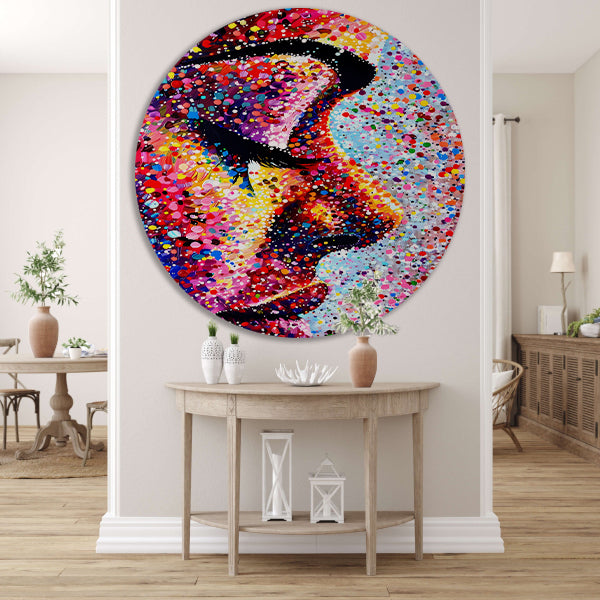 Kleurrijk abstract portret van een gezicht forex muurcirkel