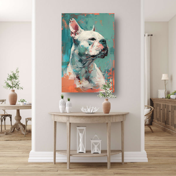 Kleurrijk abstract portret van een hond canvas met baklijst