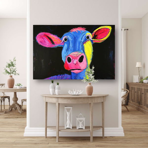 Kleurrijk abstract portret van een koe poster