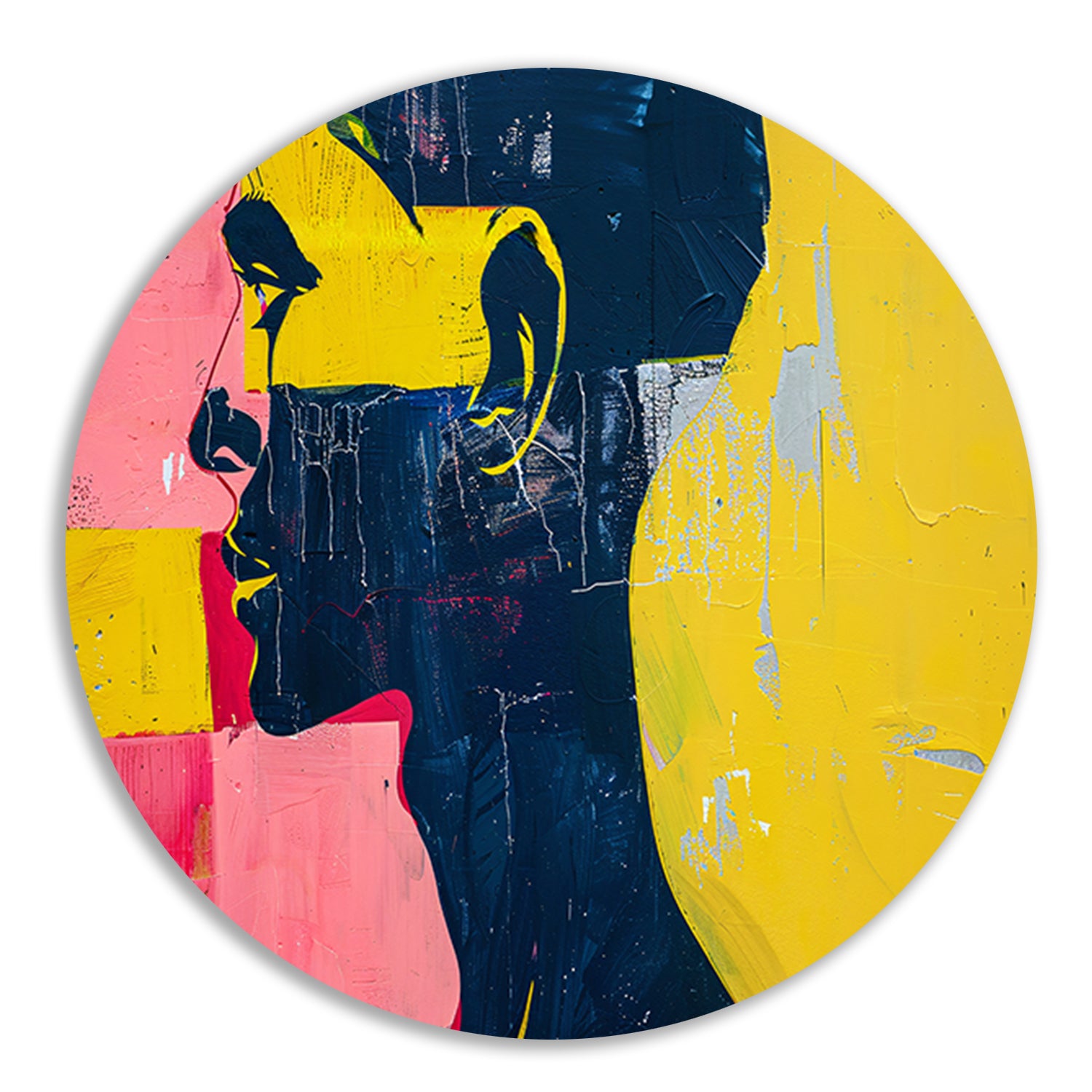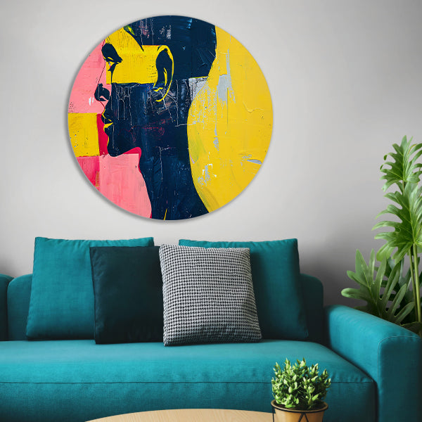 Kleurrijk abstract portret van een man aluminium muurcirkel