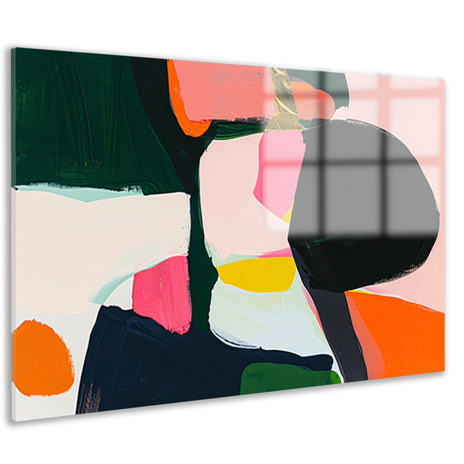 Kleurrijk abstract schilderij met dynamische vormen acrylglas