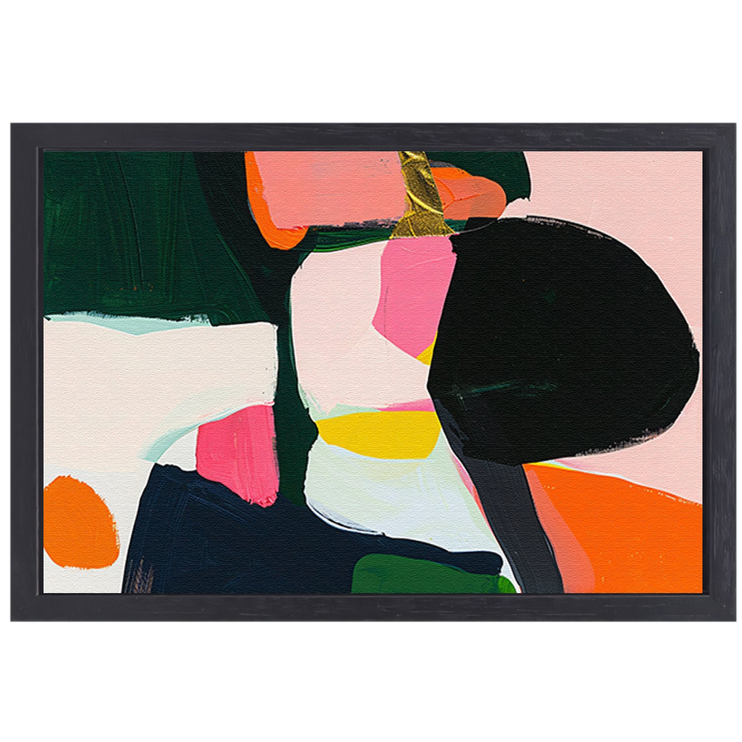 Kleurrijk abstract schilderij met dynamische vormen canvas met baklijst