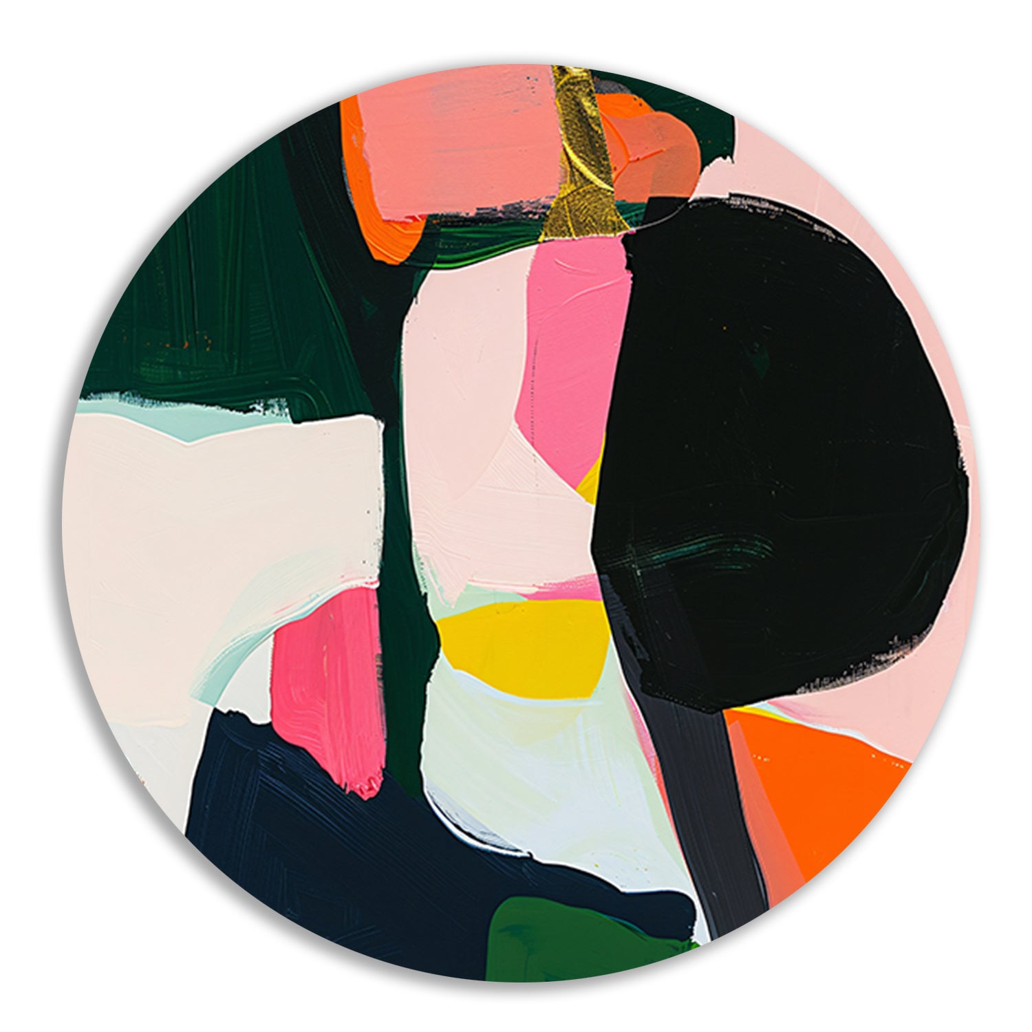 Kleurrijk abstract schilderij met dynamische vormen forex muurcirkel