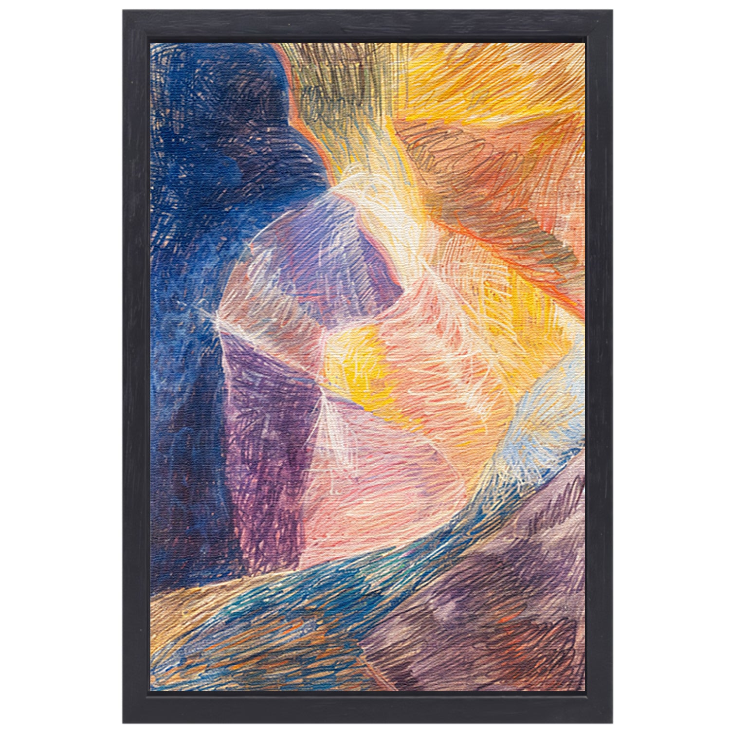 Kleurrijk abstract schilderij van berglandschap canvas met baklijst