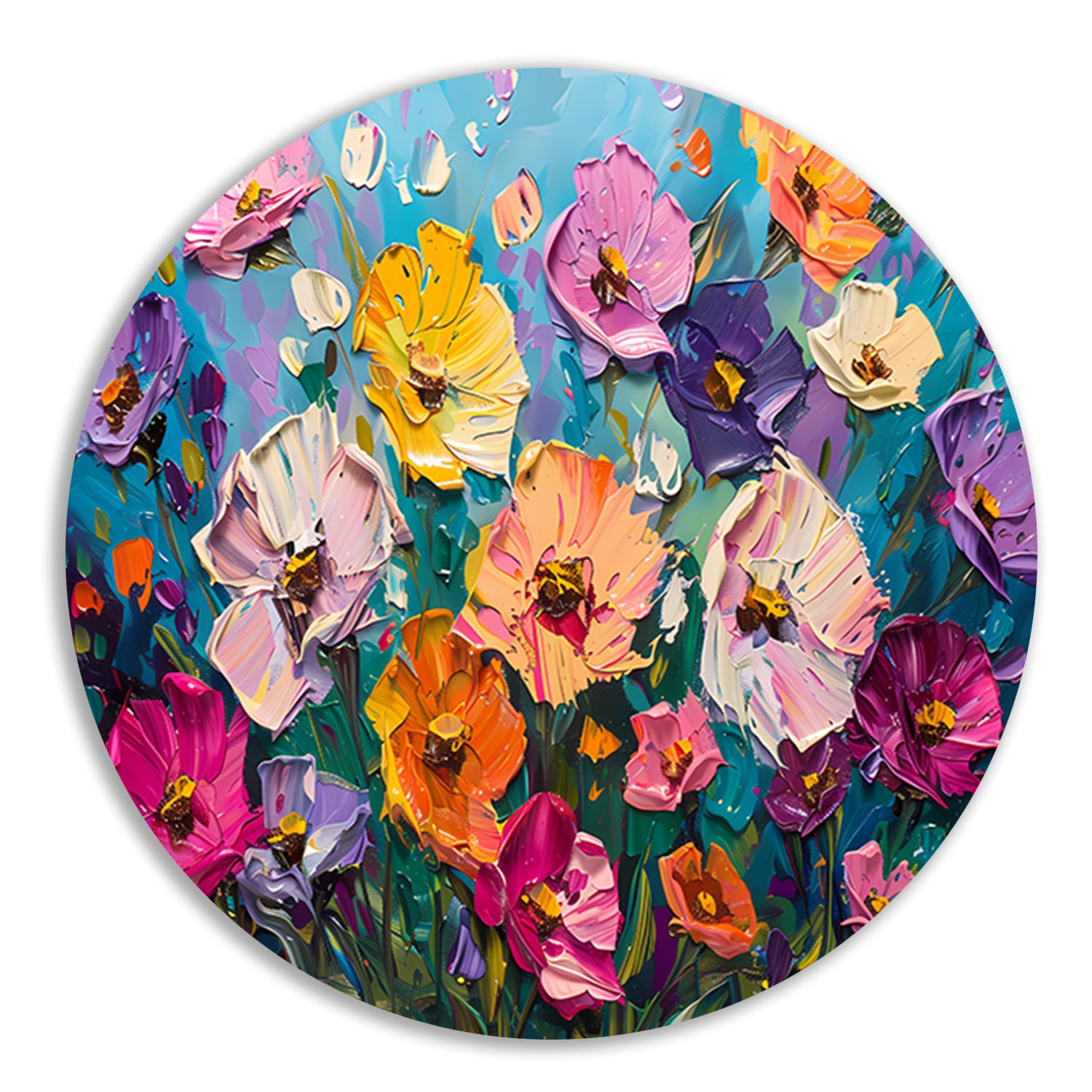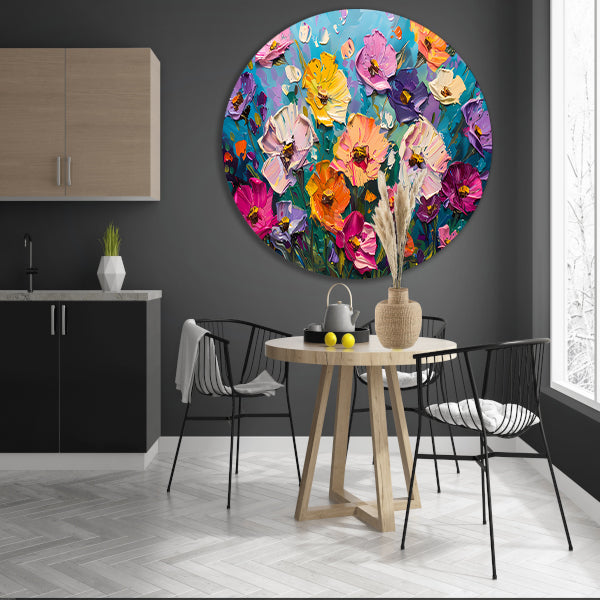 Kleurrijk abstract schilderij van bloemenveld forex muurcirkel