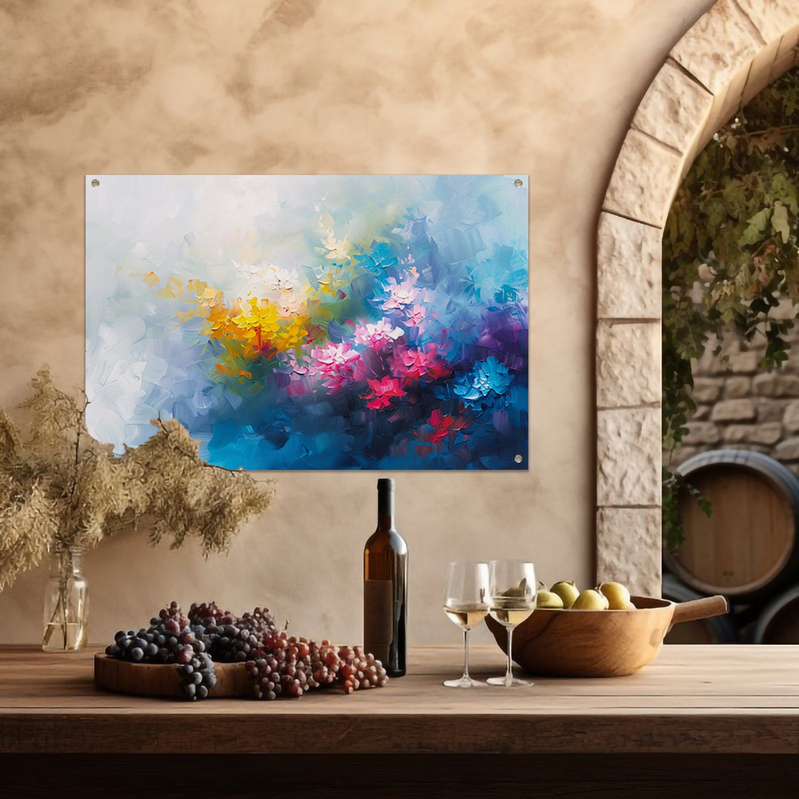 Kleurrijk abstract schilderij van bloemenveld tuinposter
