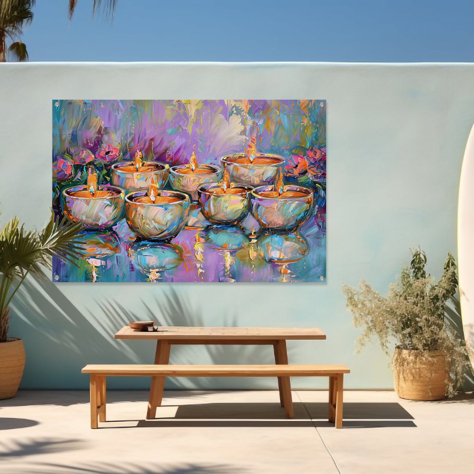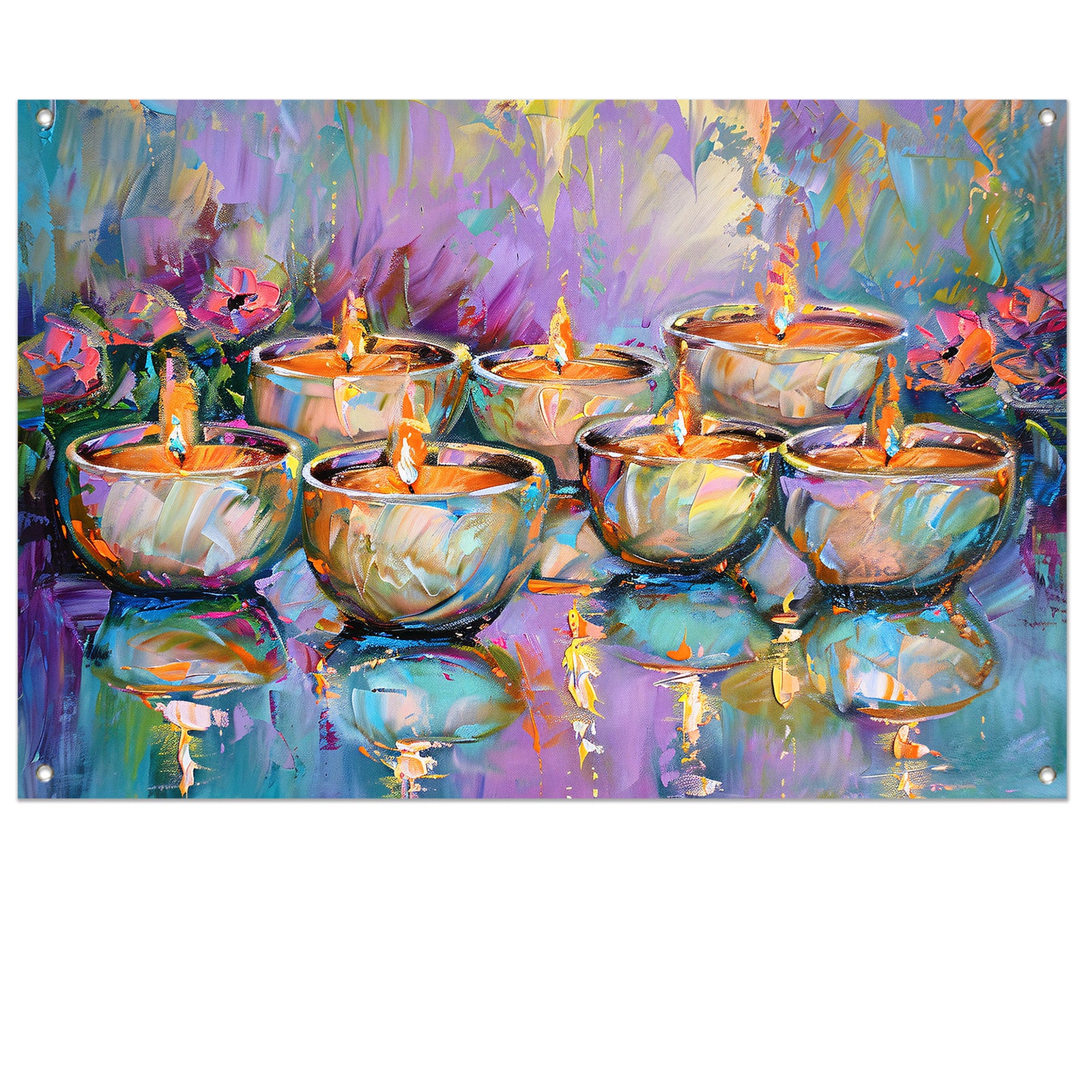 Kleurrijk abstract schilderij van brandende kaarsen tuinposter