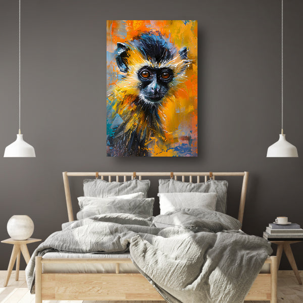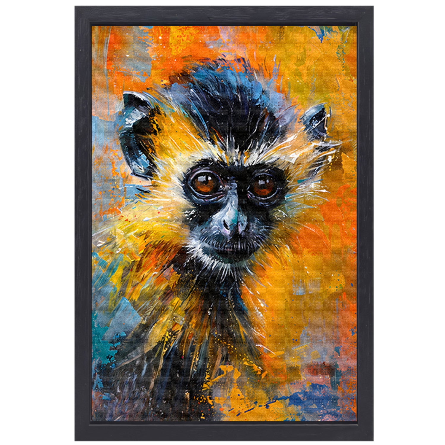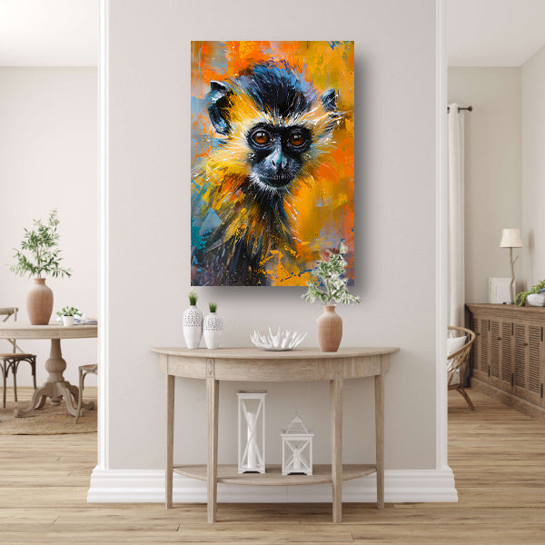 Kleurrijk abstract schilderij van een aap canvas met baklijst