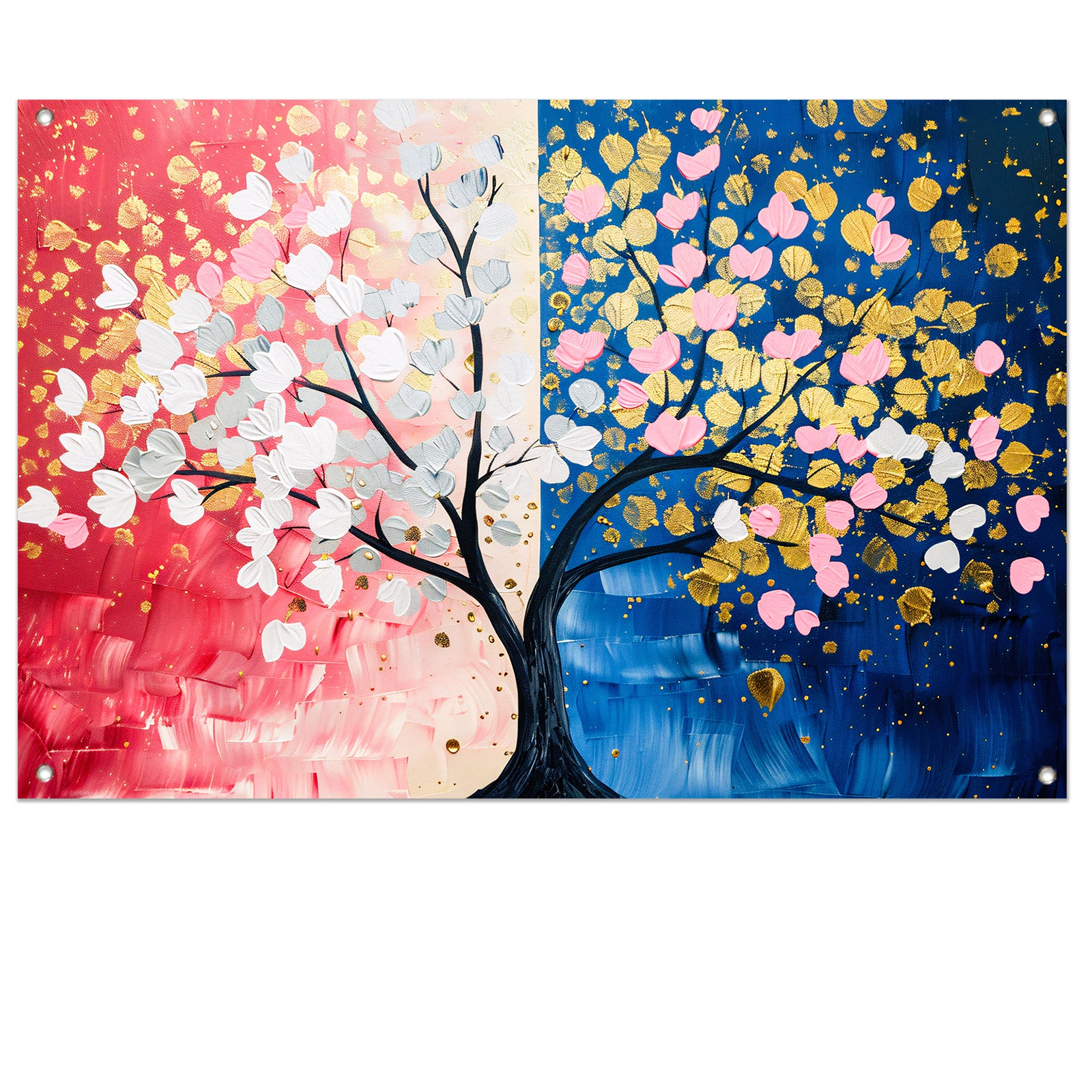 Onze tuinposters zijn UV- en waterbestendig, waardoor ze bestand zijn tegen zon en regen en hun kleuren langdurig mooi blijven. Alle tuinposters van De Muurdecoratie zijn voorzien van ringen in de hoeken, zodat je ze eenvoudig kunt ophangen. Let op: onze tuinposters worden niet met ophangsysteem geleverd.