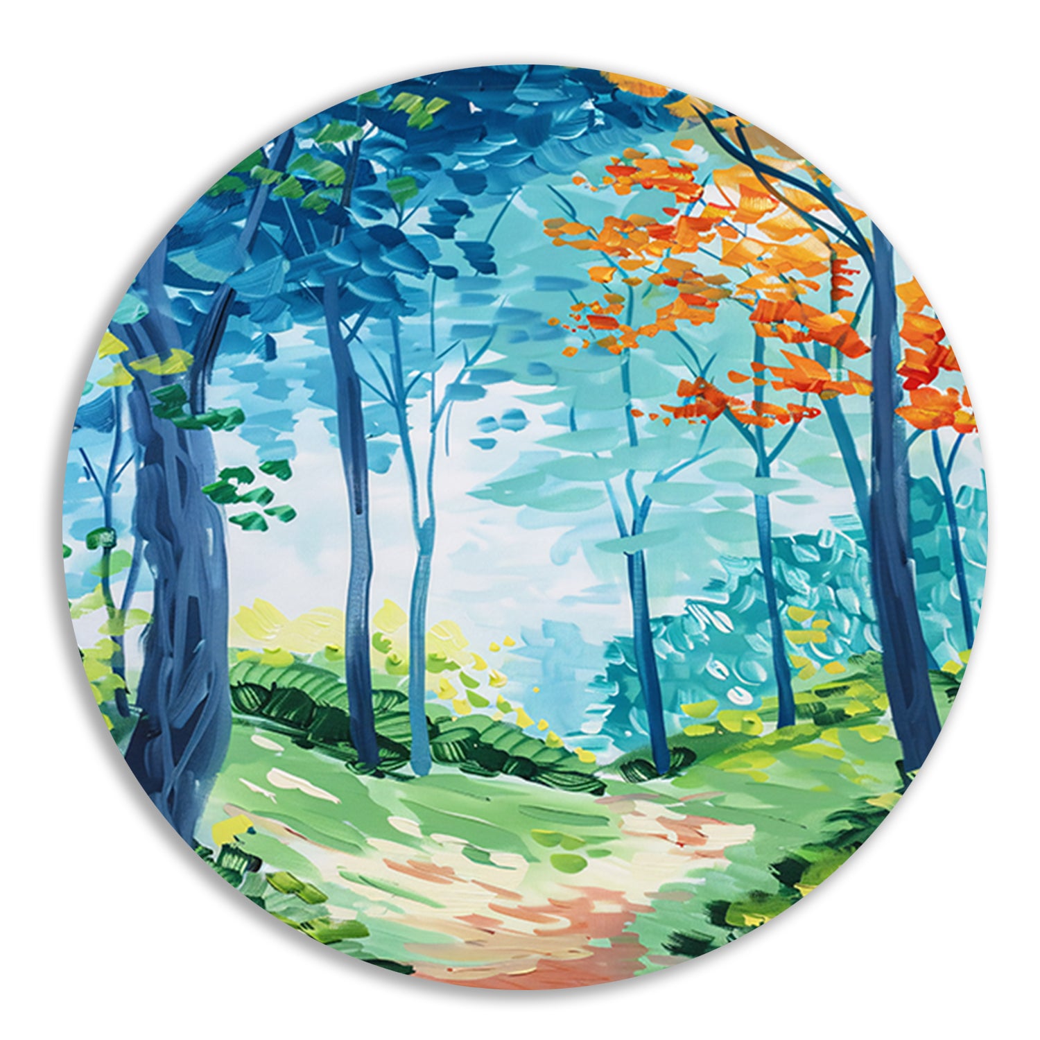 Kleurrijk abstract schilderij van een boslandschap aluminium muurcirkel