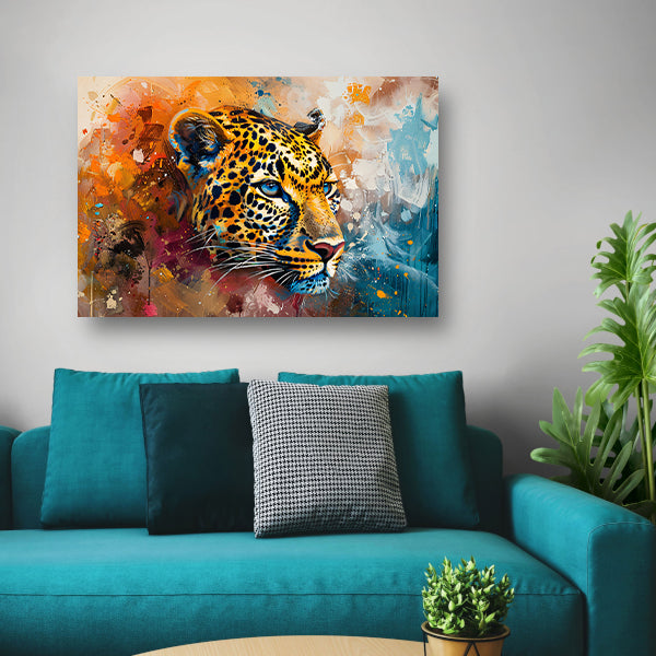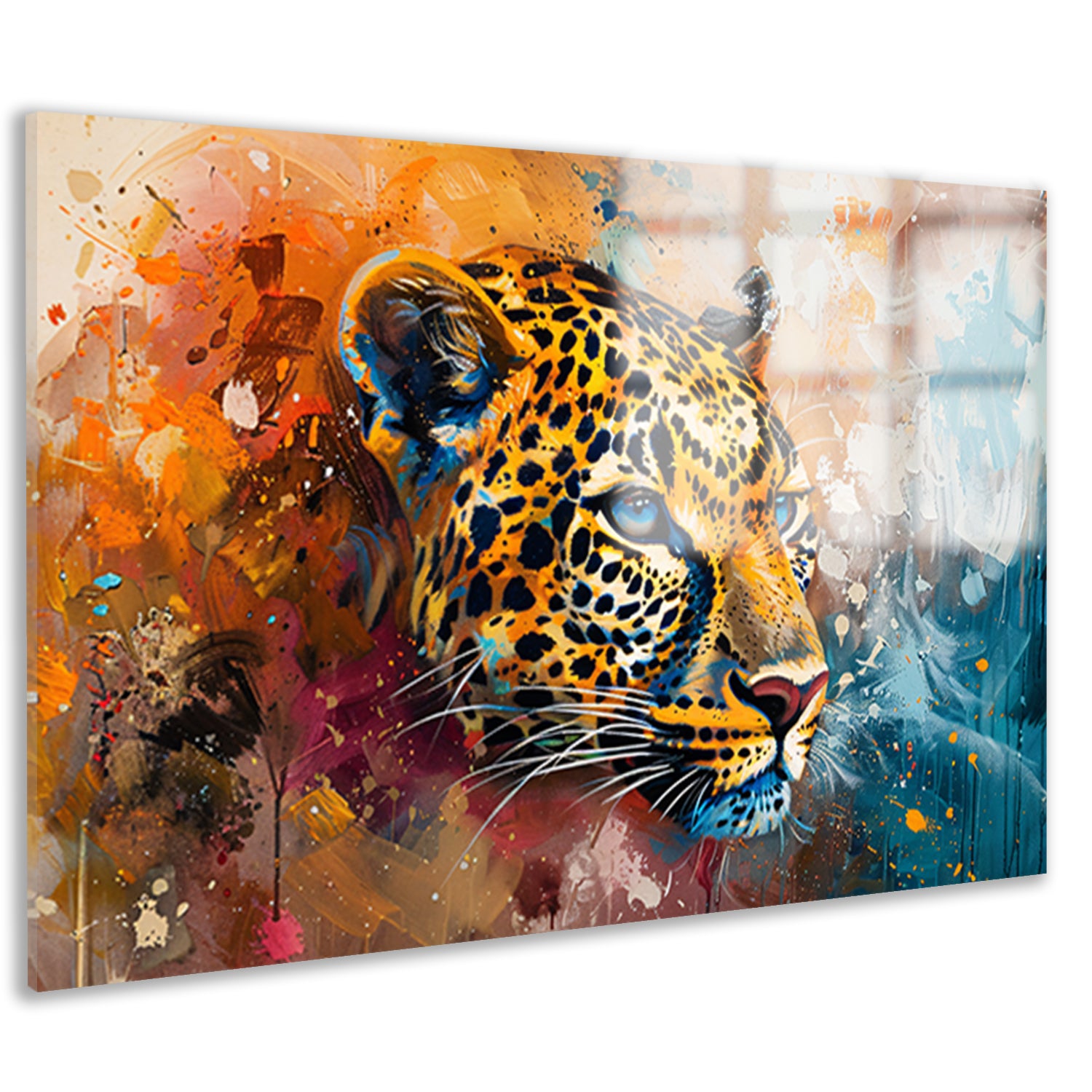Kleurrijk abstract schilderij van een luipaard acrylglas
