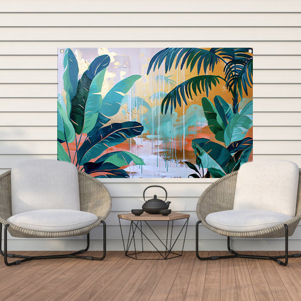 Kleurrijk abstract schilderij van een regenwoud tuinposter