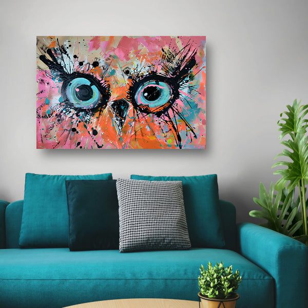 Kleurrijk abstract schilderij van een uil canvas met baklijst