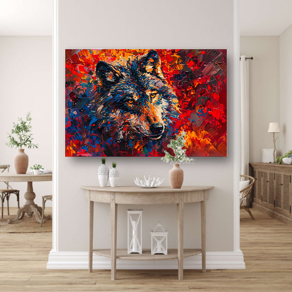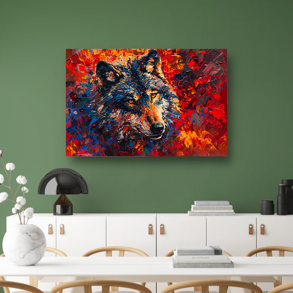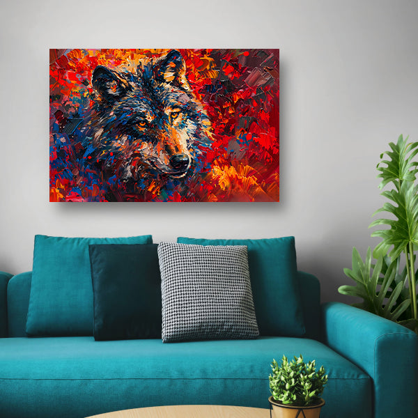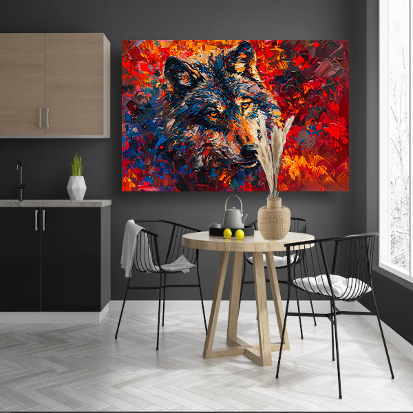 Kleurrijk abstract schilderij van een wolf acrylglas