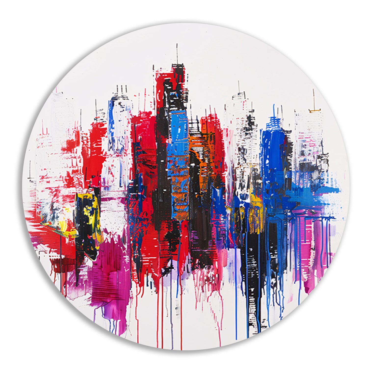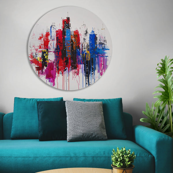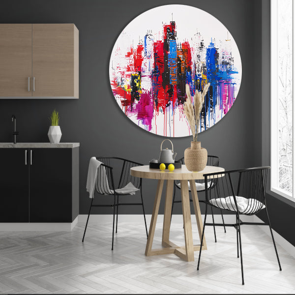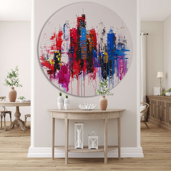 Kleurrijk abstract stadsgezicht op witte achtergrond forex muurcirkel