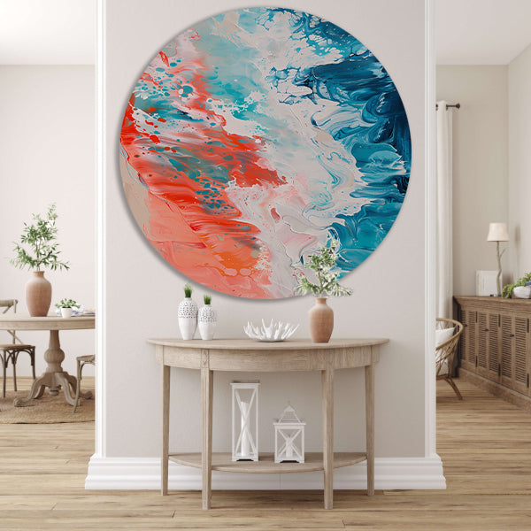 Kleurrijk abstract strandlandschap schilderij aluminium muurcirkel