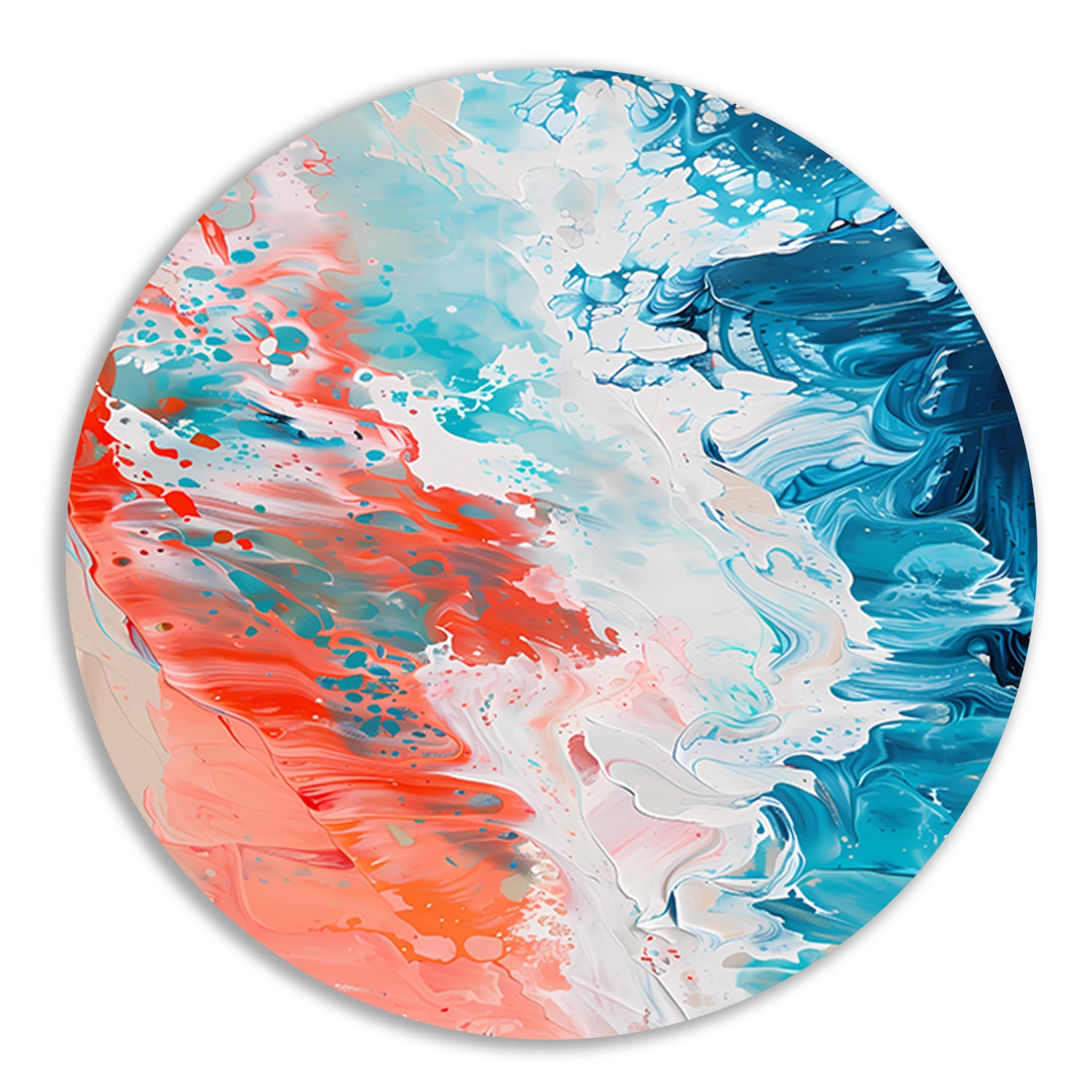 Breng de warmte en vrolijkheid van het strand in huis met dit prachtige kleurrijke abstracte strandlandschap schilderij op forex muurcirkel. Een uniek en stijlvol kunstwerk dat zeker de aandacht zal trekken. Perfect voor liefhebbers van moderne en abstracte kunst.