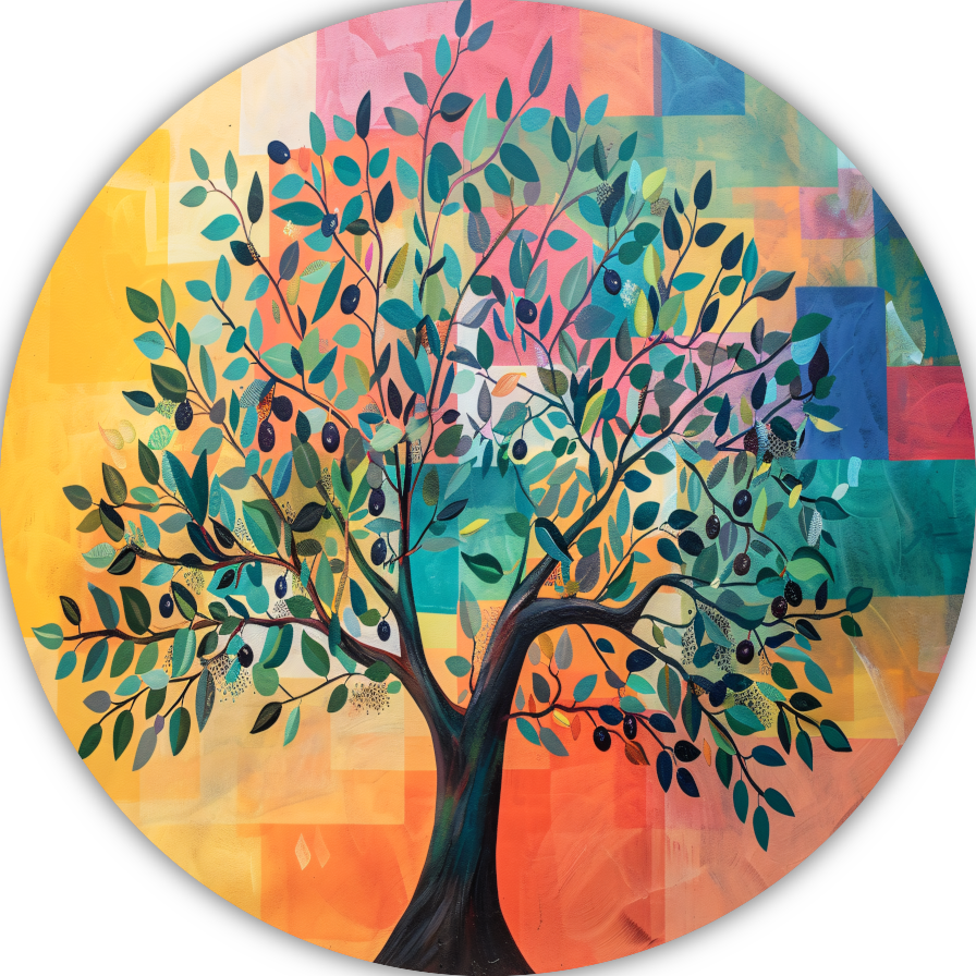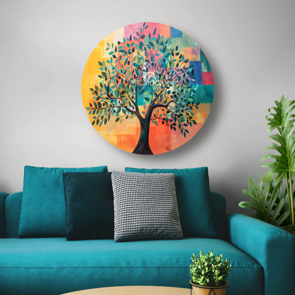 Kleurrijk Abstracte Boomlandschap aluminium muurcirkel