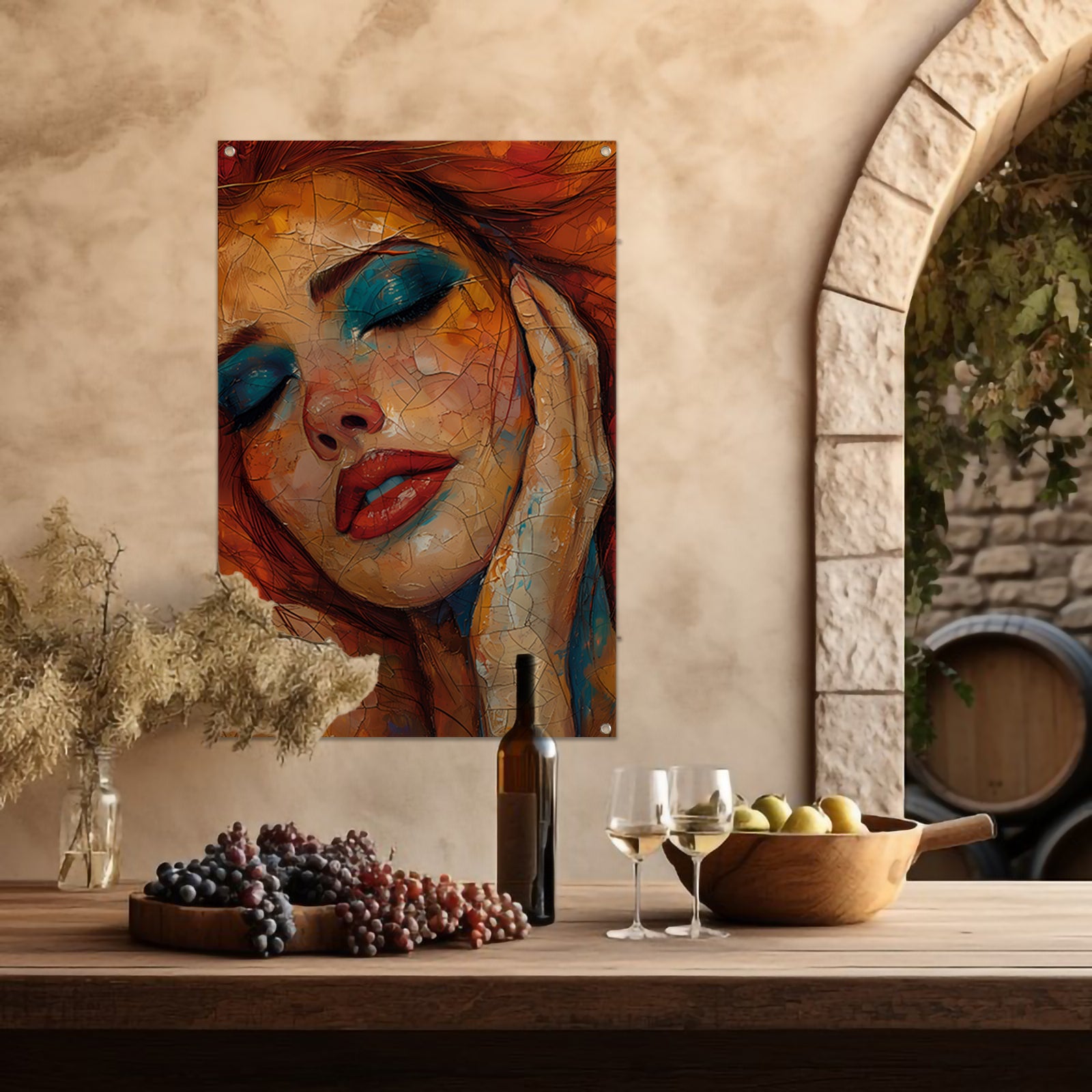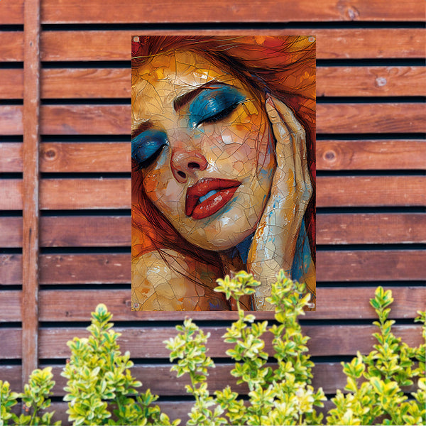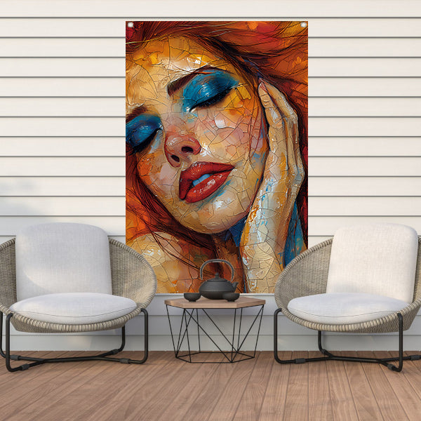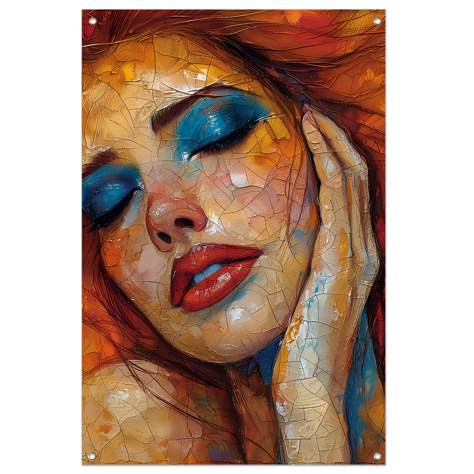 Kleurrijk Abstractie van een Vrouwelijk Gezicht tuinposter