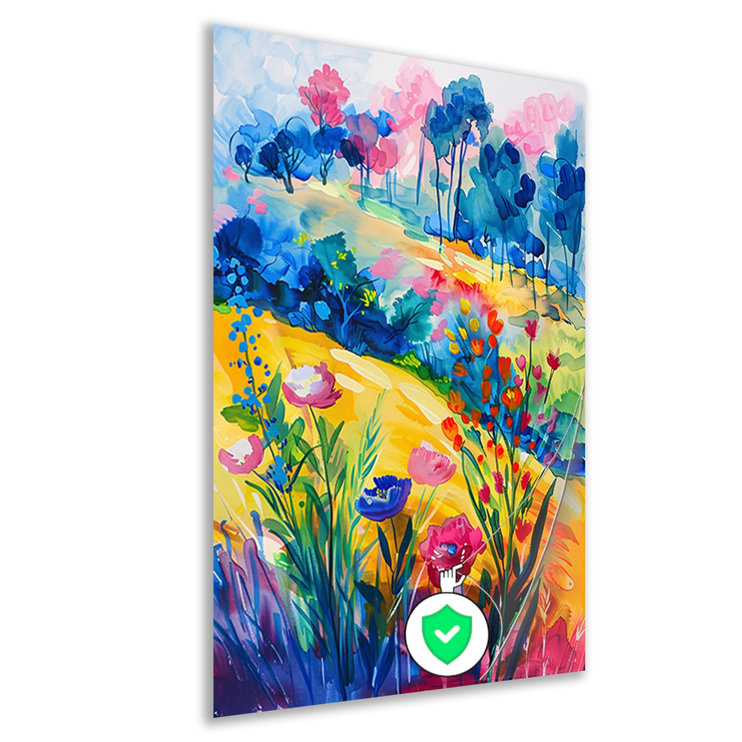 Kleurrijk aquarel van zomerse bloemen en bomen poster
