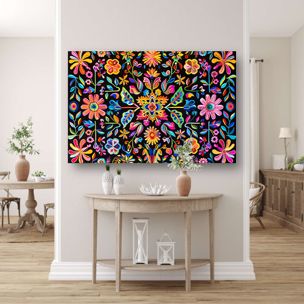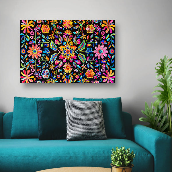 Kleurrijk Bloemenpatroon op Zwarte Achtergrond poster