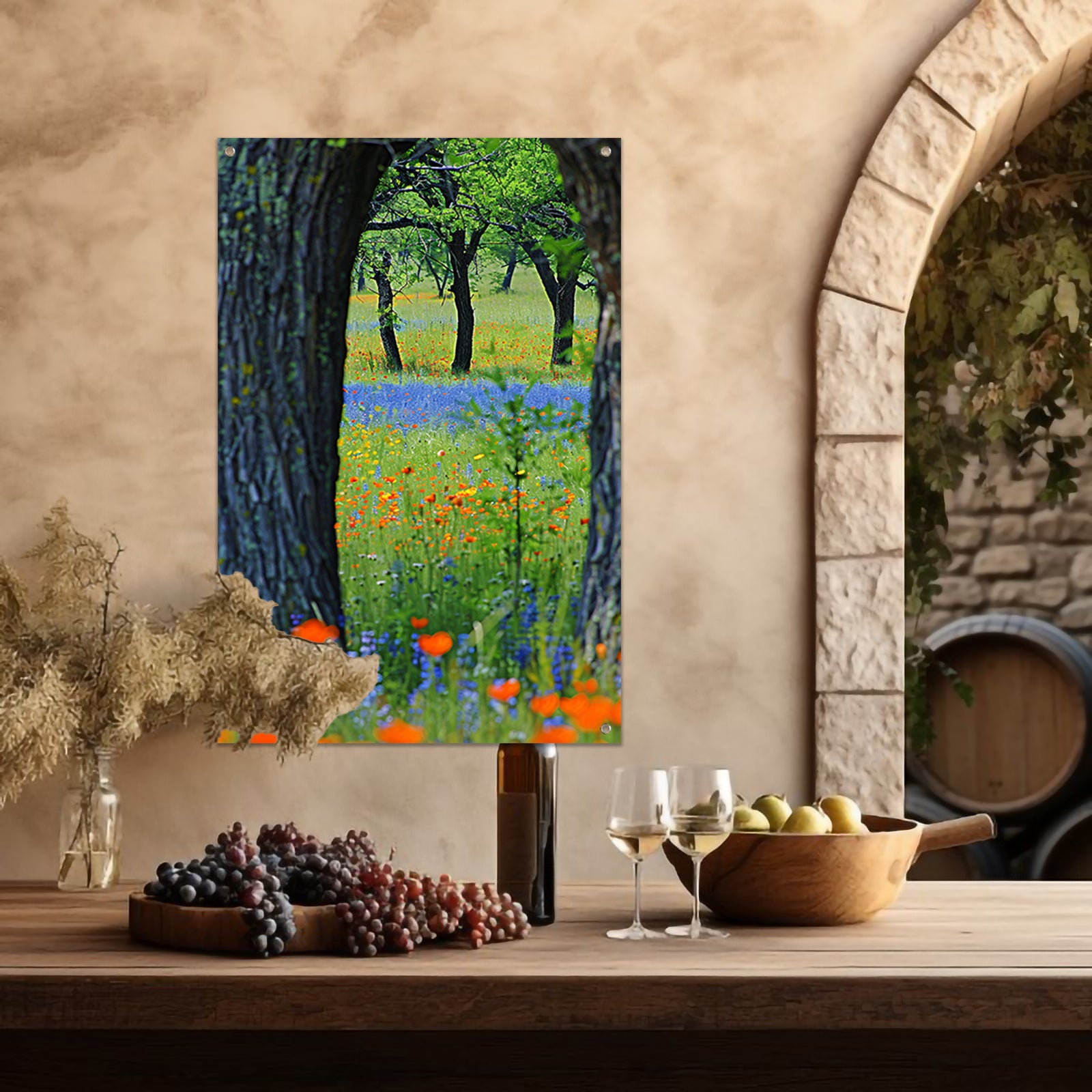 Kleurrijk Bloemenveld met Bomen tuinposter