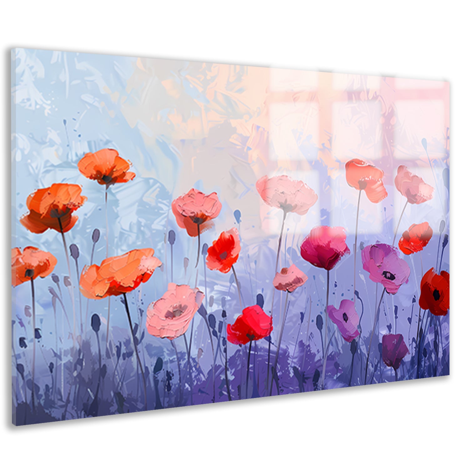 Kleurrijk bloemenveld tegen lichte achtergrond acrylglas