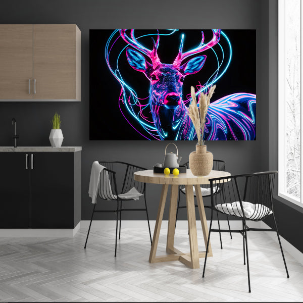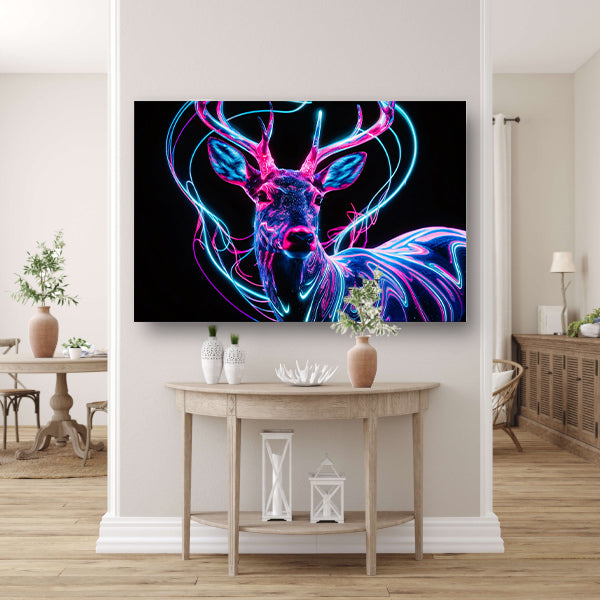Kleurrijk digitaal hert met neonlichten canvas met baklijst