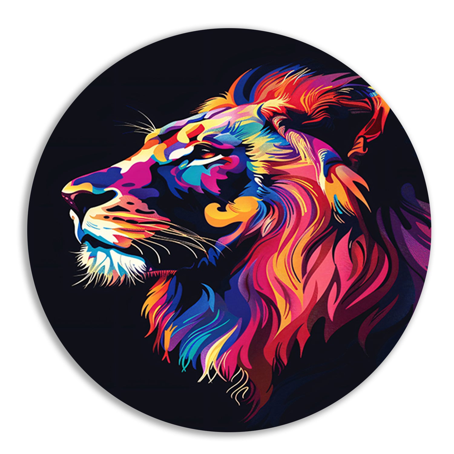 Kleurrijk digitale kunstprint van een leeuw aluminium muurcirkel