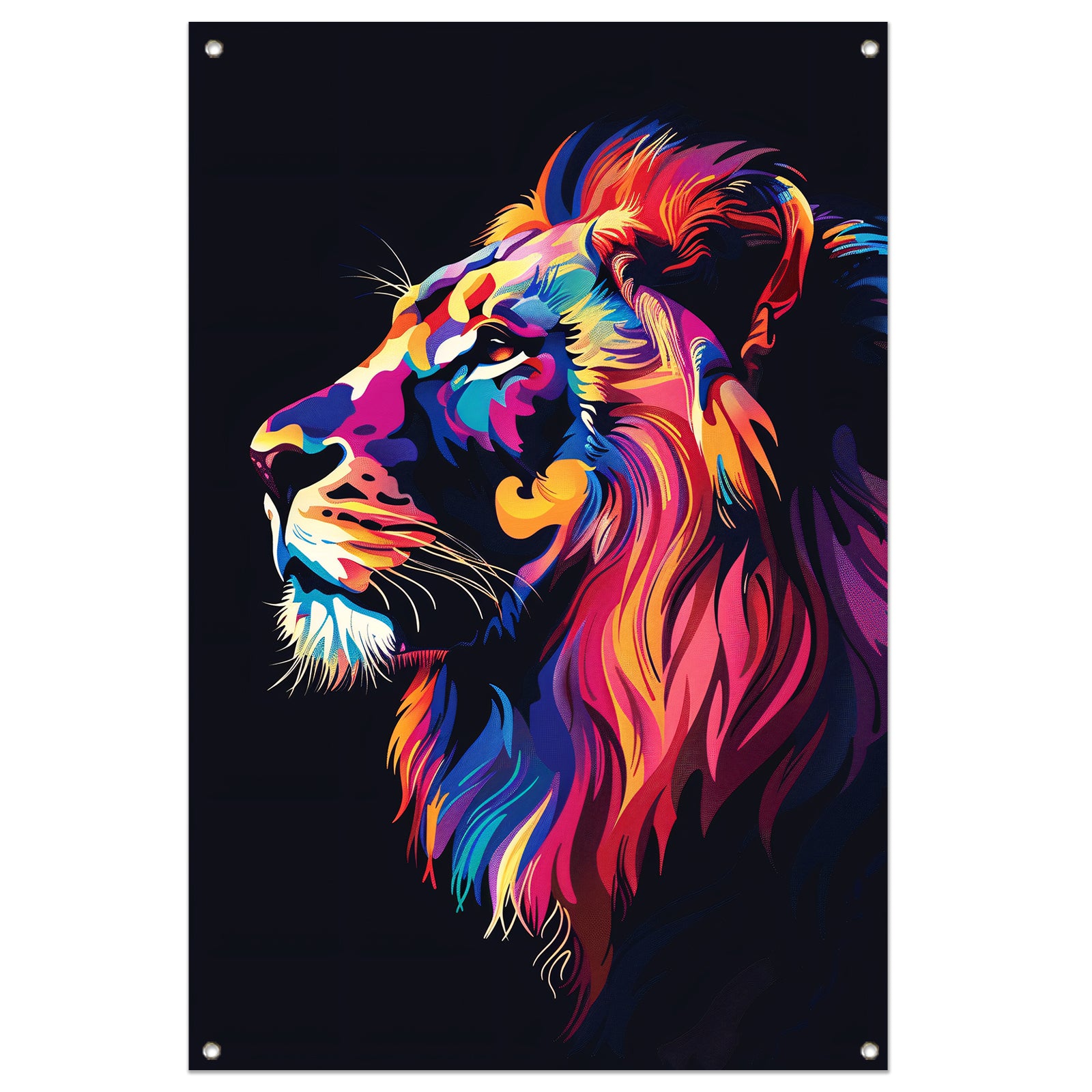 Kleurrijk digitale kunstprint van een leeuw tuinposter