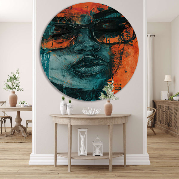Breng wat kleur en expressie in je interieur met dit prachtige portret van een vrouw met een bril op een forex muurcirkel. Bestel vandaag nog en geniet binnenkort van dit unieke kunstwerk in jouw huis.
