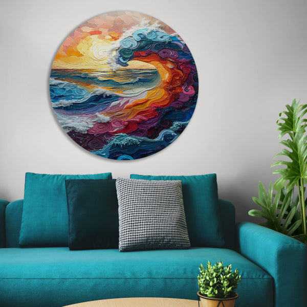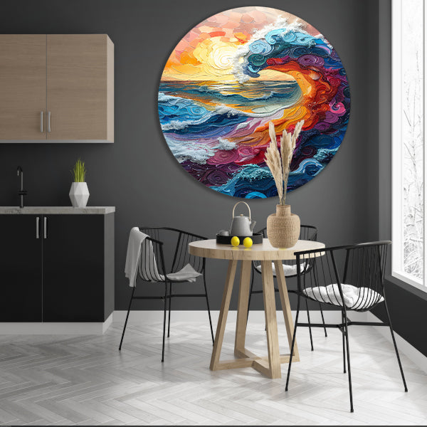Kleurrijk golf bij zonsondergang forex muurcirkel