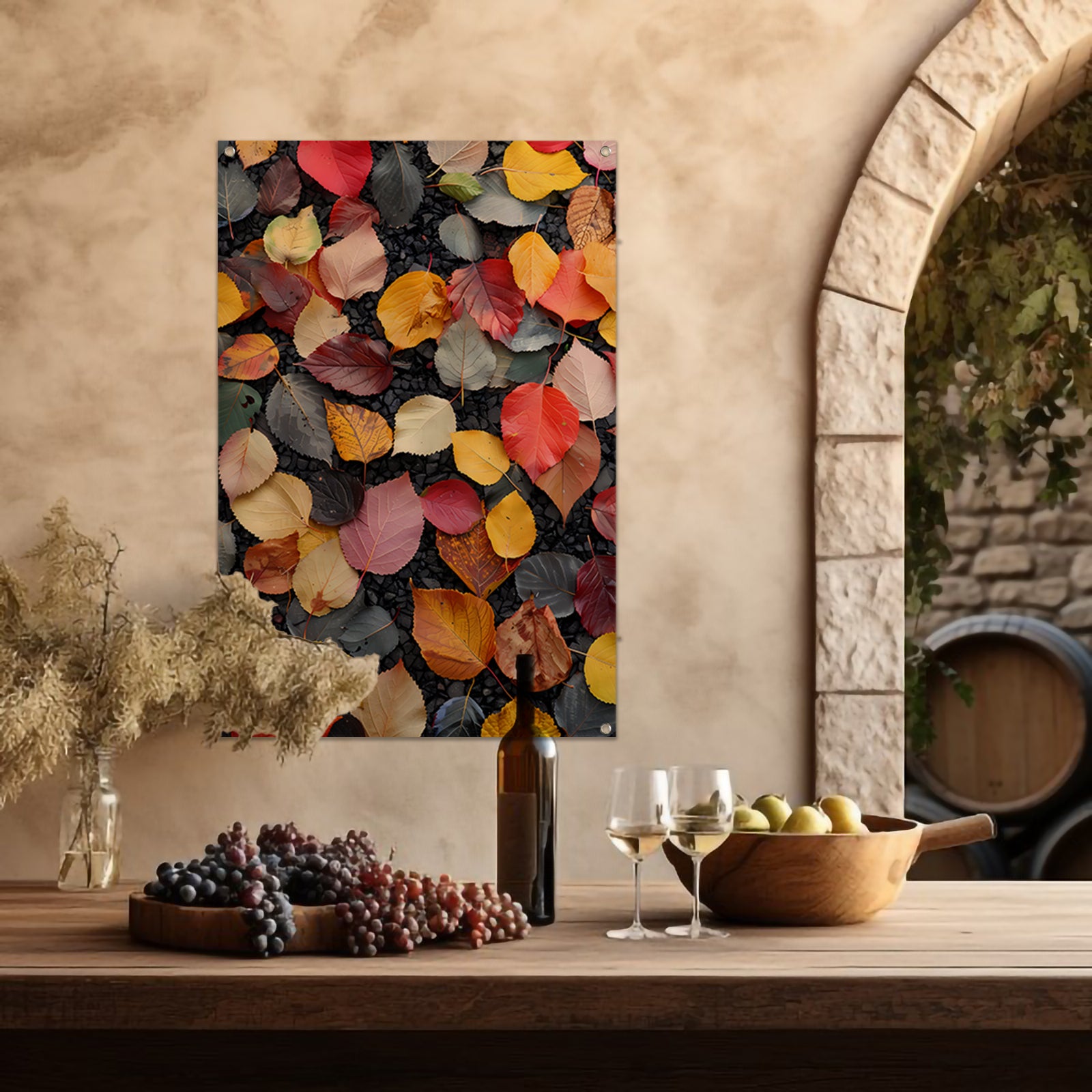 Kleurrijk herfstbladeren op donkere straat tuinposter
