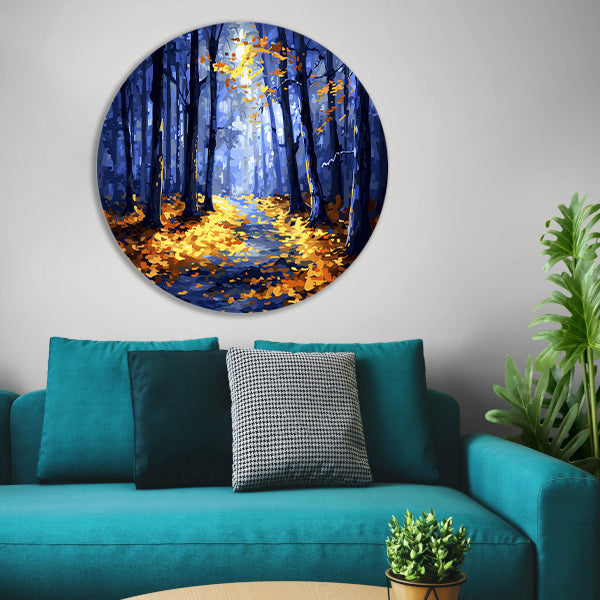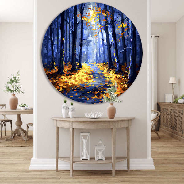 Kleurrijk herfstbos met zonlicht forex muurcirkel