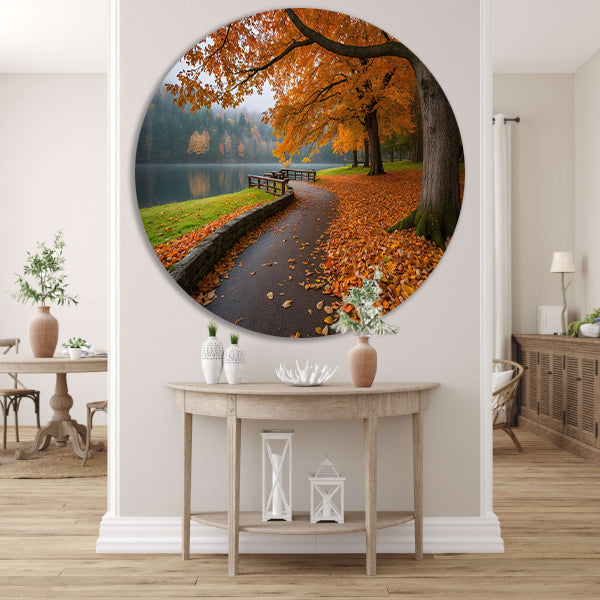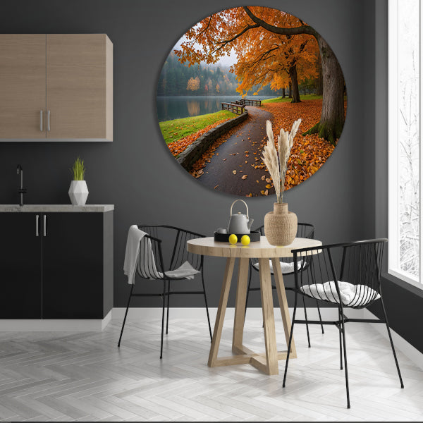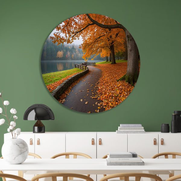 Breng de prachtige kleuren van de herfst in huis met deze unieke muurcirkel en geniet dagelijks van het sfeervolle uitzicht langs het meer. Een eyecatcher voor aan de wand!