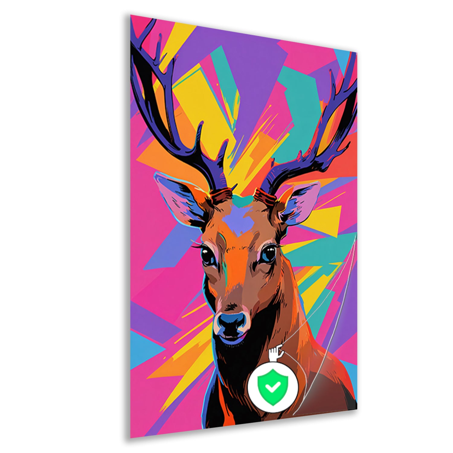 Kleurrijk hert in popart-stijl met abstracte achtergrond poster