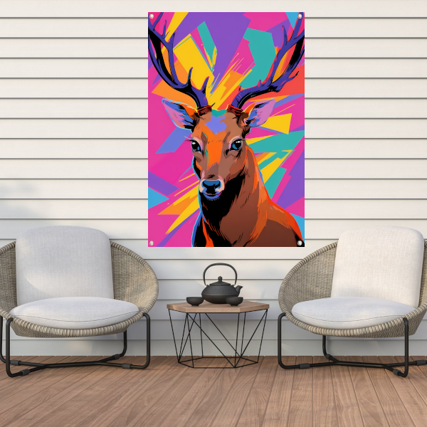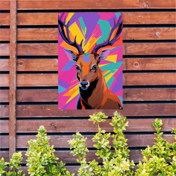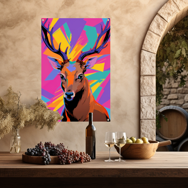 Kleurrijk hert in popart-stijl met abstracte achtergrond tuinposter
