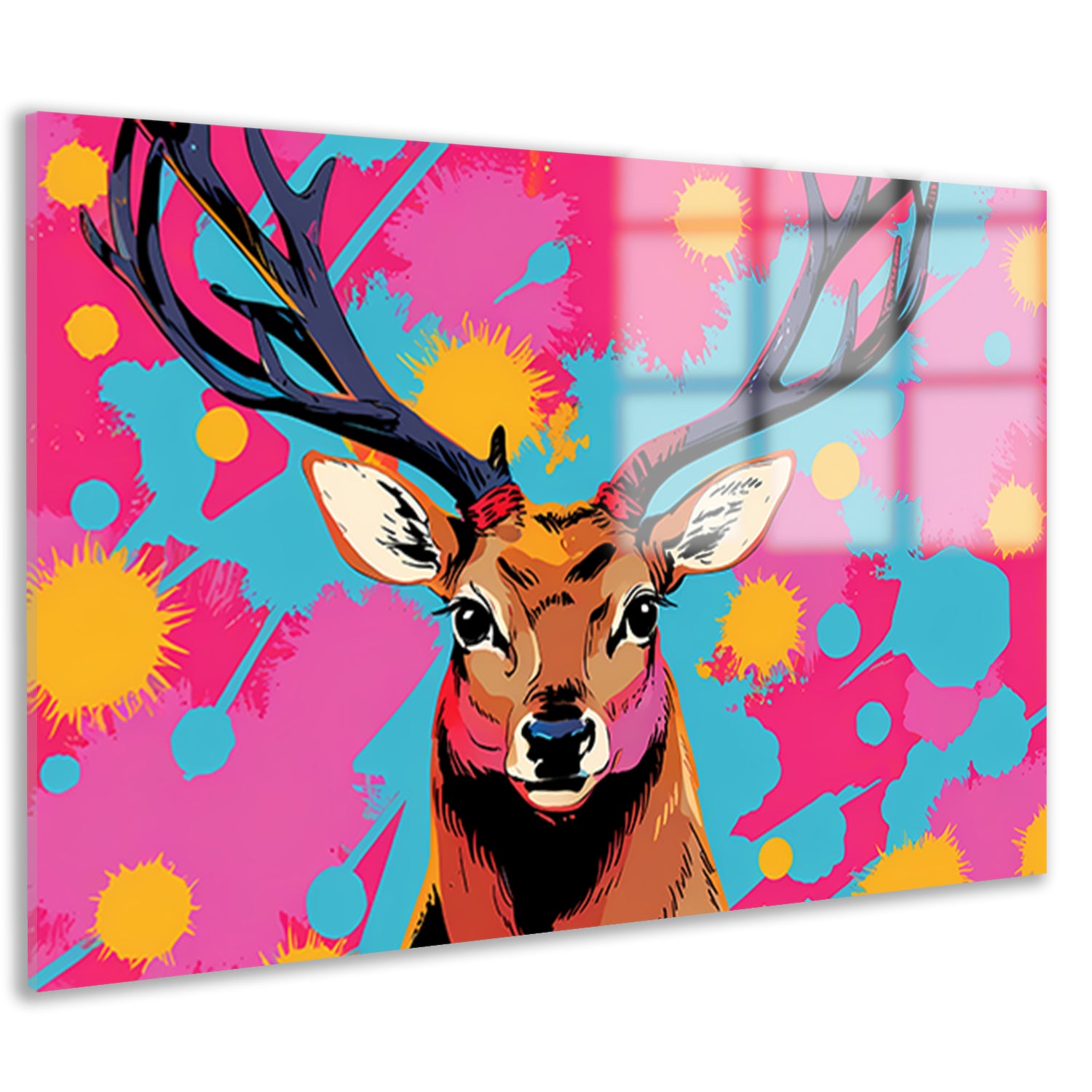 Kleurrijk hert in popart stijl schilderij acrylglas