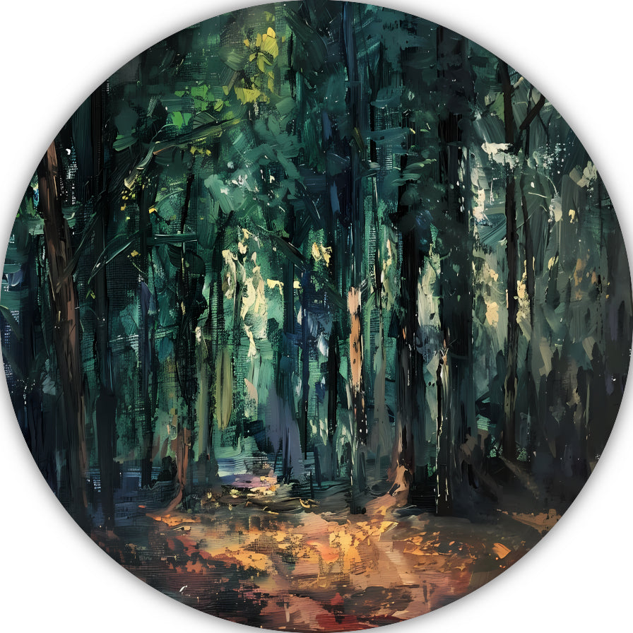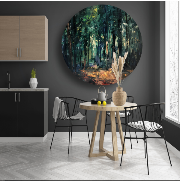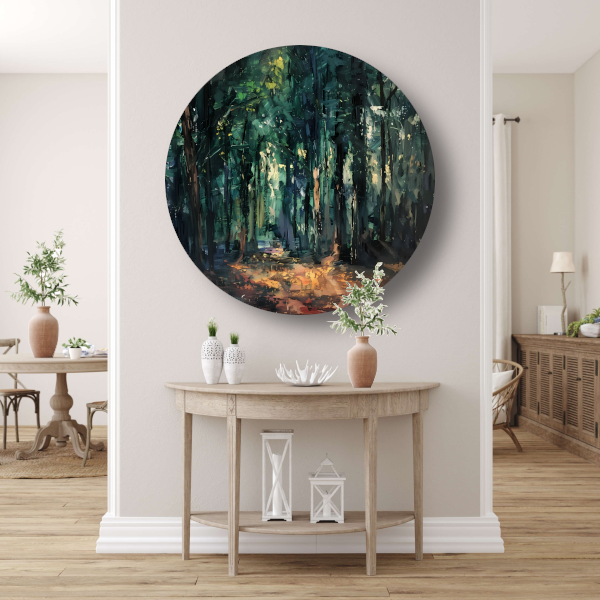 Kleurrijk impressionistisch bos met zonlicht forex muurcirkel