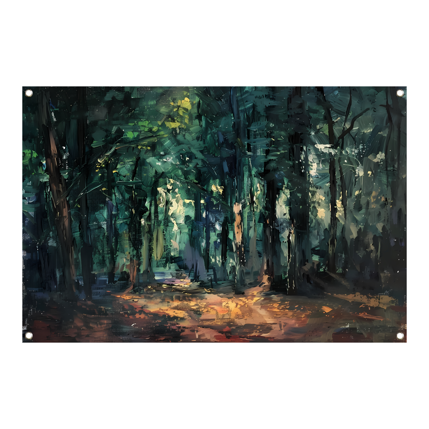 Kleurrijk impressionistisch bos met zonlicht tuinposter
