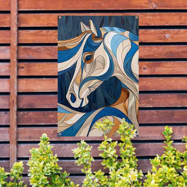 Kleurrijk kubistisch schilderij van een paard tuinposter