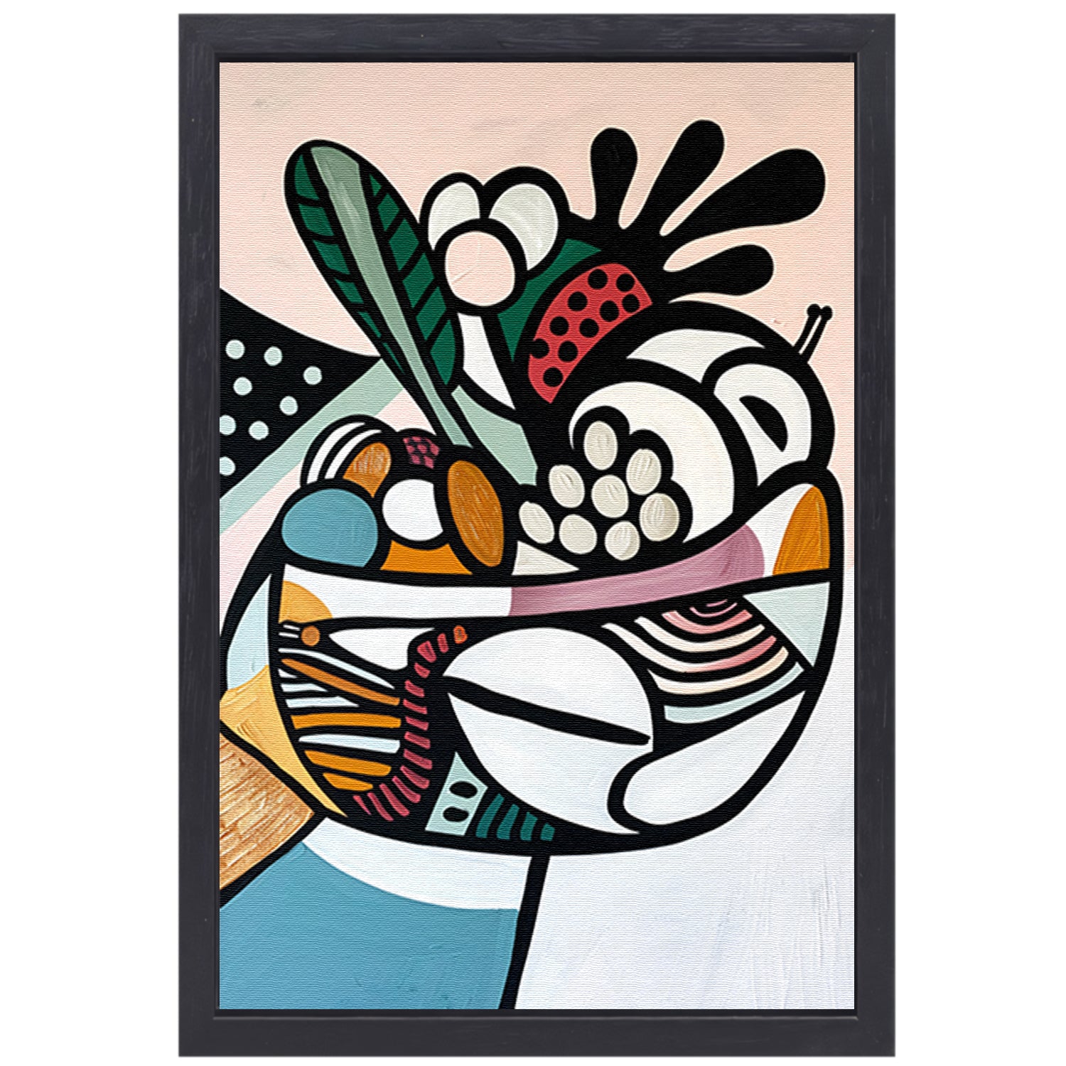 Kleurrijk kubistisch schilderij van fruit canvas met baklijst