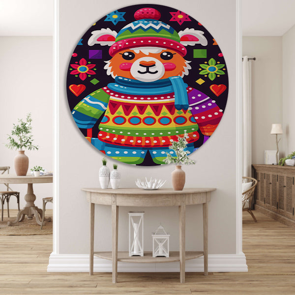 Kleurrijk Lama met Cadeautjes forex muurcirkel