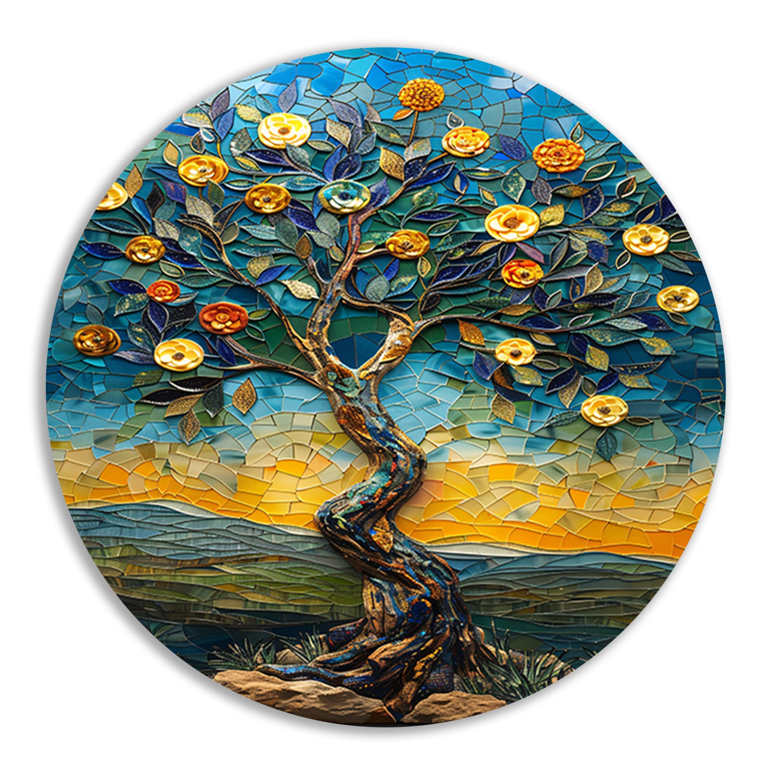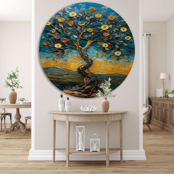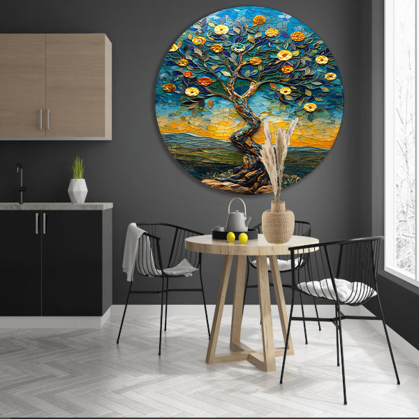 Kleurrijk Mozaïek Boom in Landschap forex muurcirkel