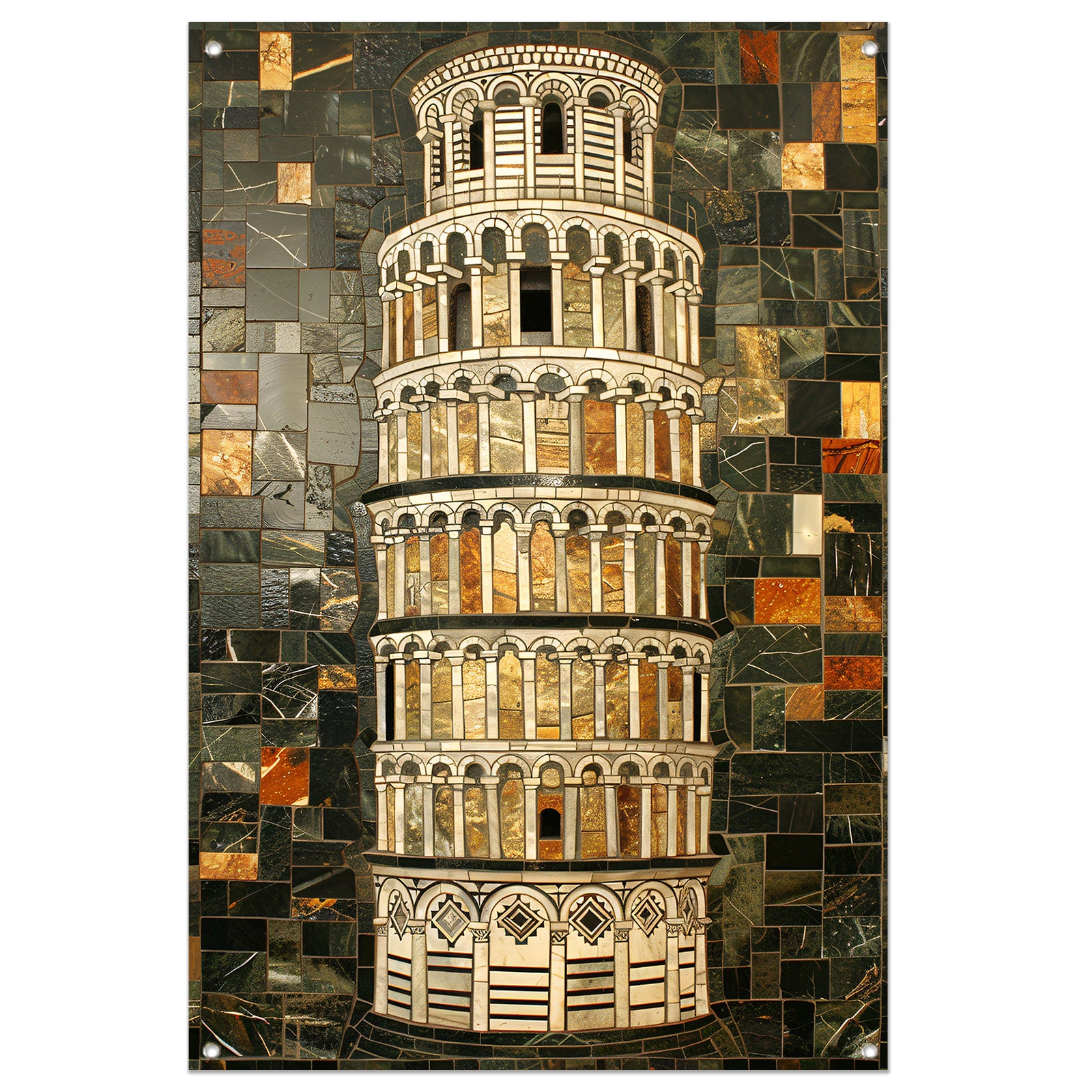 Kleurrijk mozaïek van de toren van Pisa tuinposter