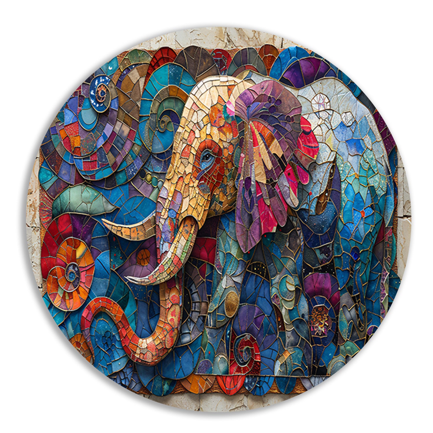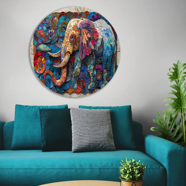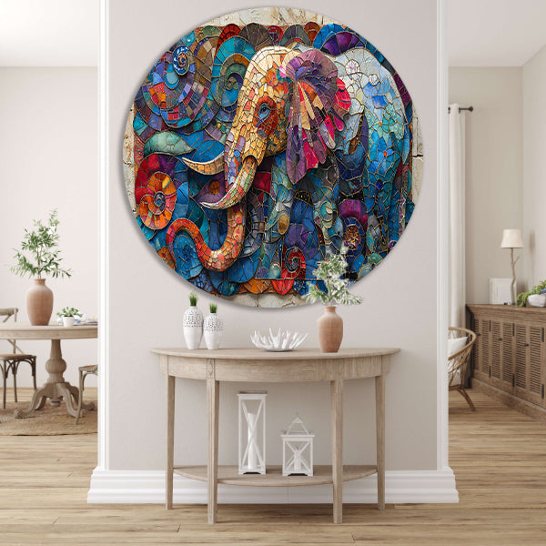 Kleurrijk Mozaïek van een Olifant met Bloemen forex muurcirkel
