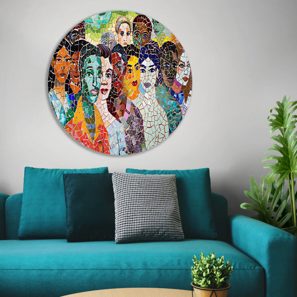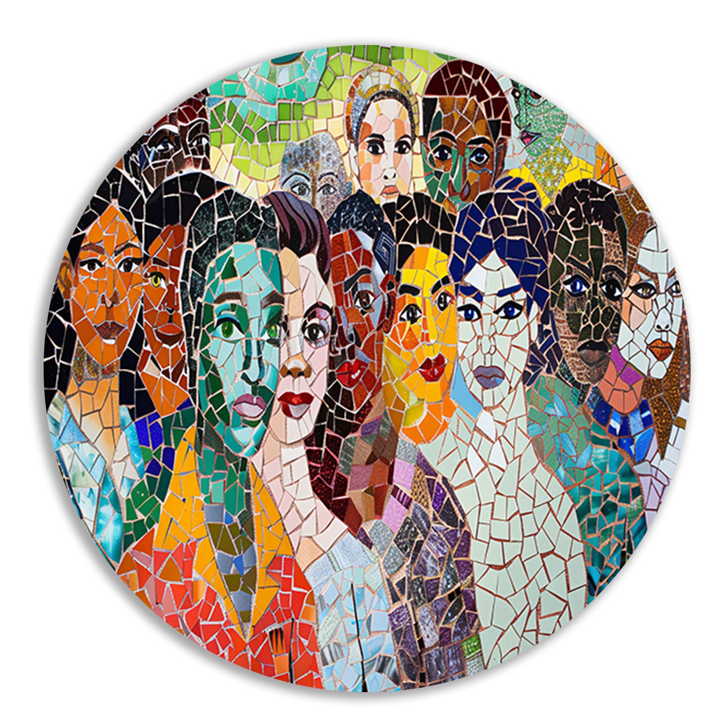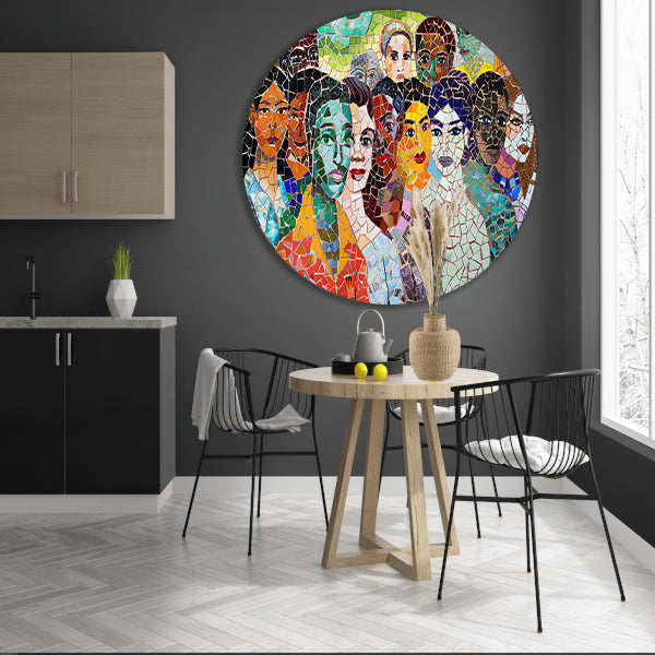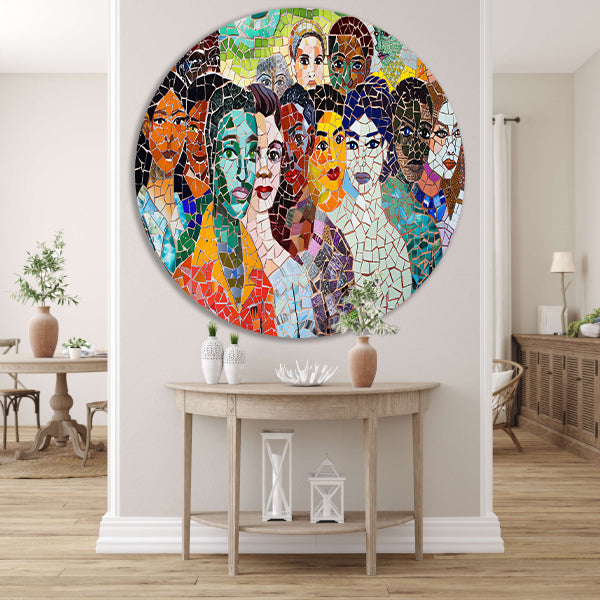 Kleurrijk mozaïekportret van diverse gezichten forex muurcirkel