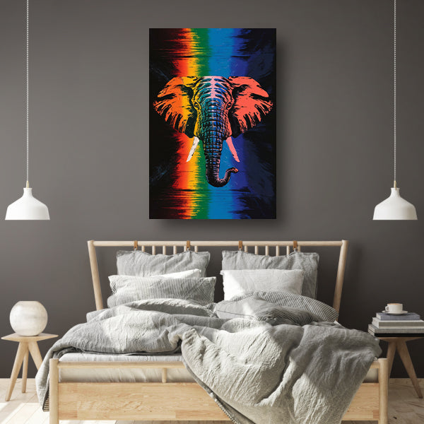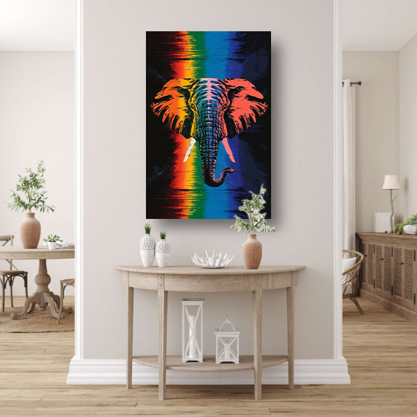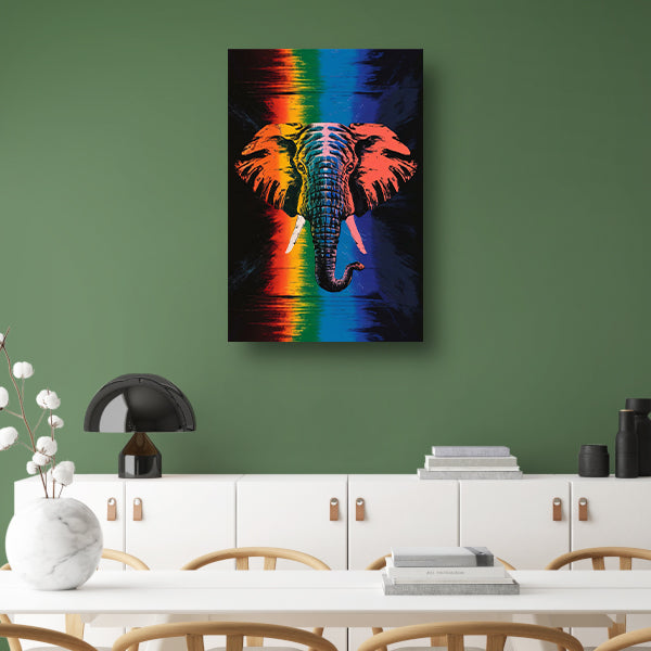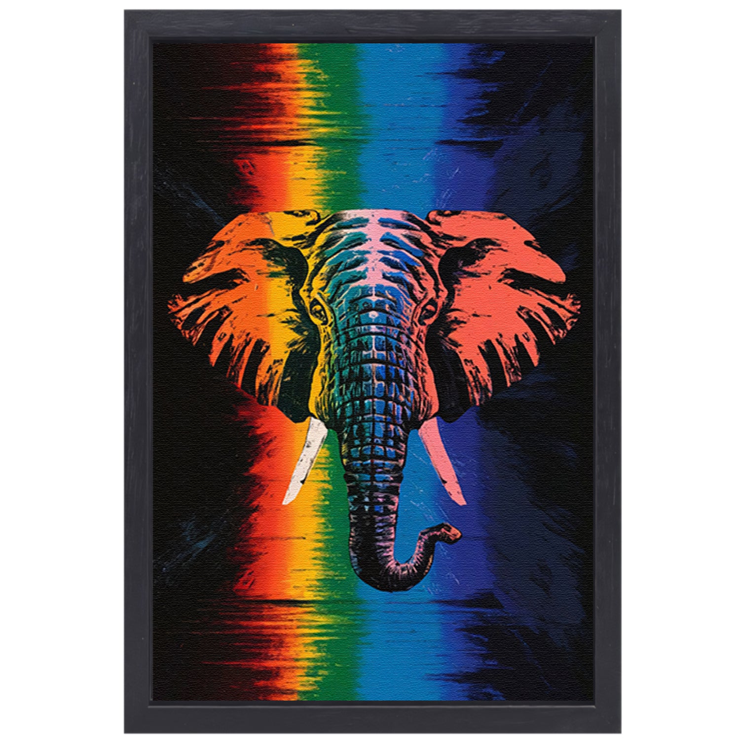 Kleurrijk olifant kunstwerk met regenboogkleuren canvas met baklijst